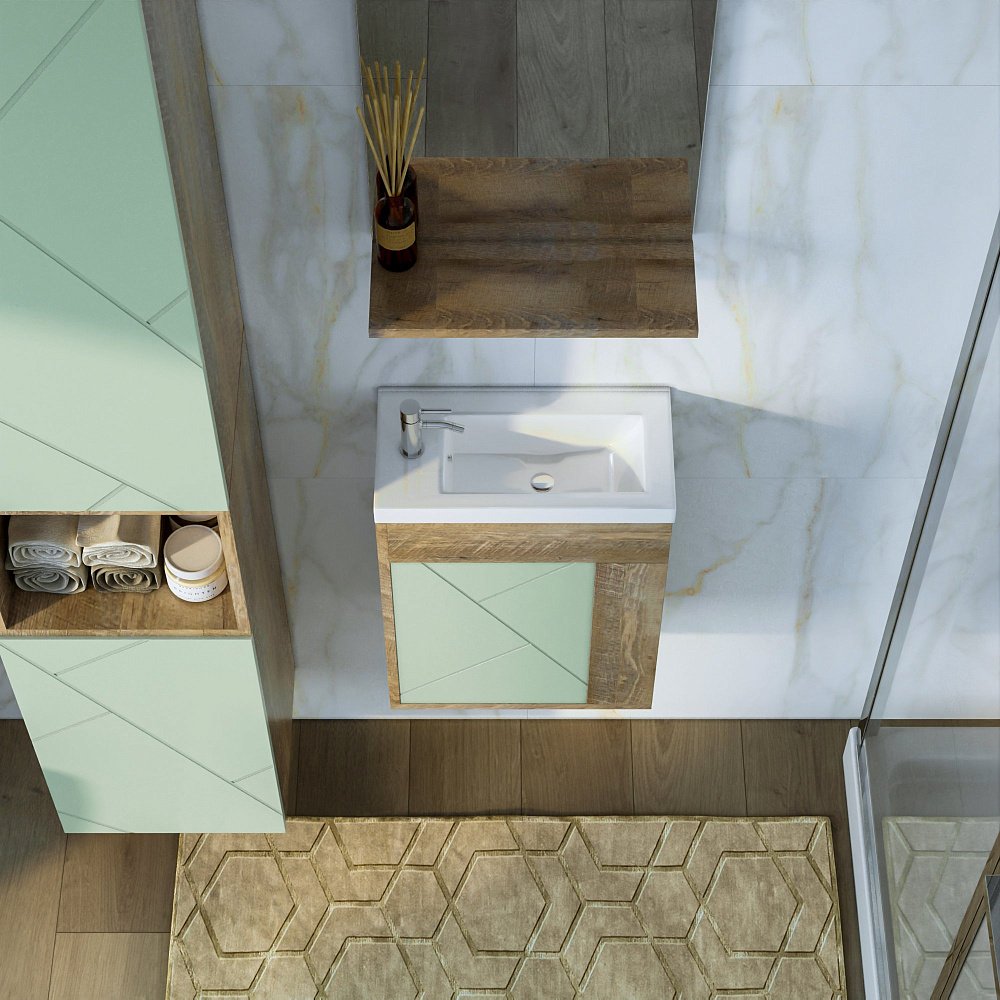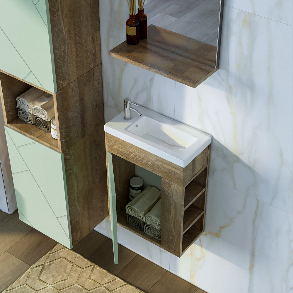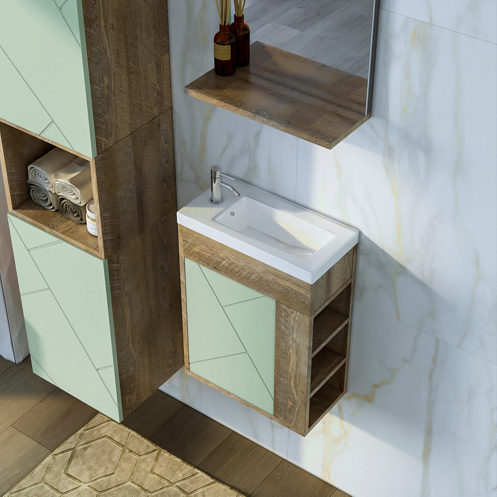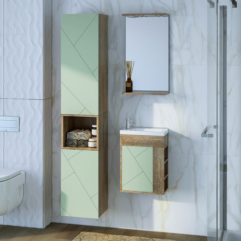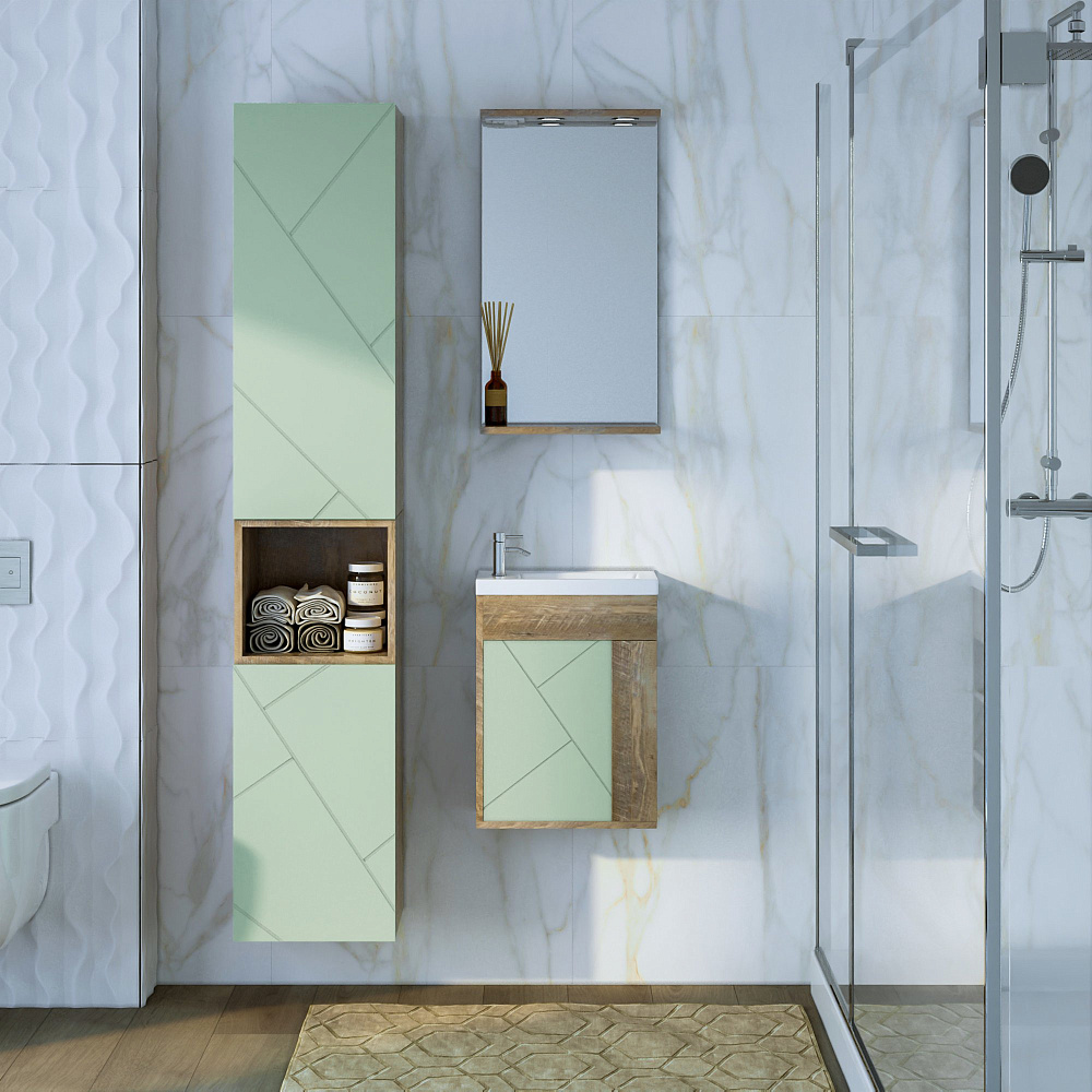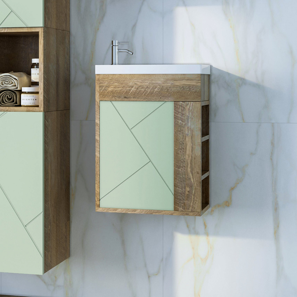 Тумба под раковину без столешницы «Бриклаер Кристалл 40 фисташка, дуб гранж песочный» — это стильное и практичное решение для вашей ванной комнаты. Благодаря отсутствию задней стенки, вы сможете легко подвести трубы, что сэкономит время и силы при монтаже. Навесы тумбы регулируются, что позволяет адаптировать её под любую высоту раковины. Фисташковый оттенок и песочный дуб гранж придадут вашей ванной комнате уют и гармонию. Тумба не только красива, но и функциональна. Она станет отличным дополнением к вашему интерьеру и поможет создать комфортное пространство для ежедневных водных процедур. Надёжная конструкция и качественные материалы обеспечивают долговечность и устойчивость тумбы. Она легко впишется в любой дизайн ванной комнаты и станет её гармоничным элементом.