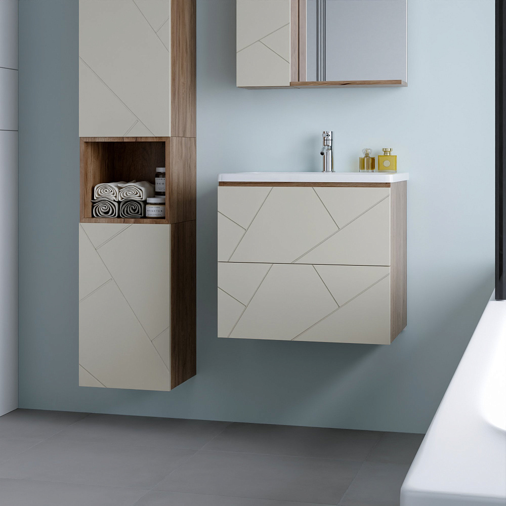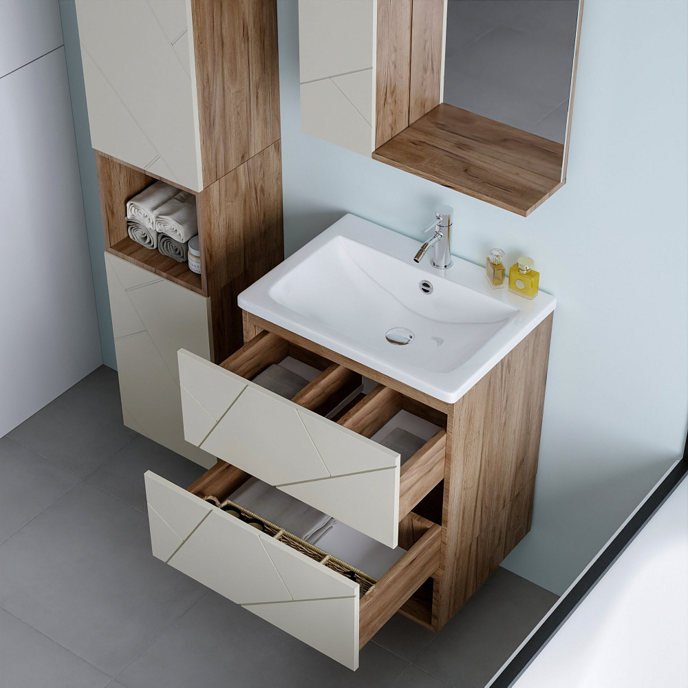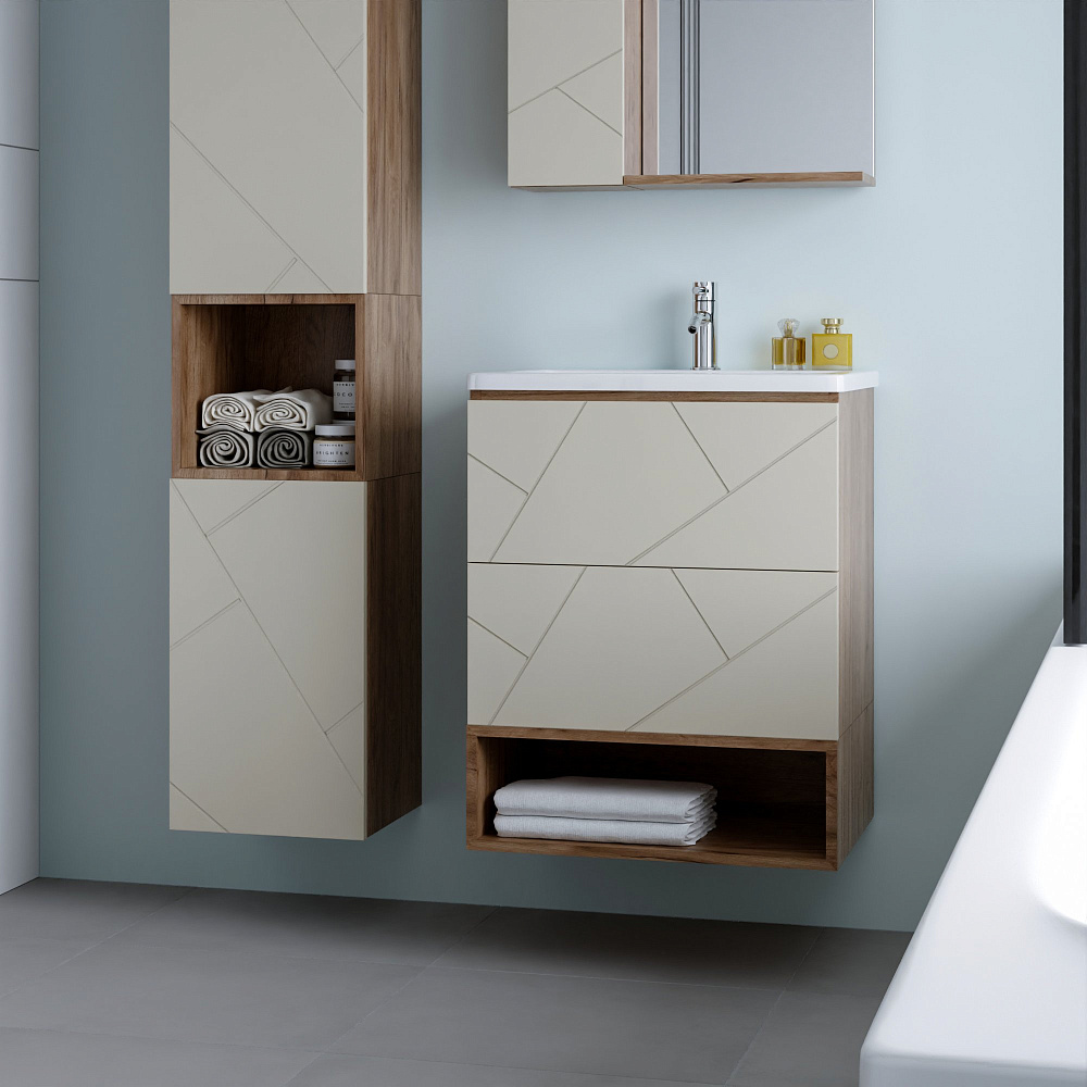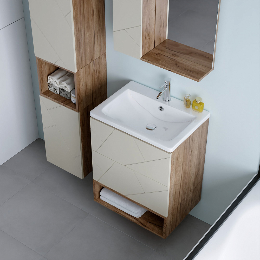 Тумба под раковину «Бриклаер Кристалл 60 латте, дуб крафт табачный» — это не просто функциональный элемент ванной комнаты, а настоящее украшение интерьера. Она выполнена из качественных материалов, которые обеспечивают долговечность и надёжность конструкции. Тумба имеет универсальный цвет и текстуру, что позволяет ей гармонично сочетаться с любым стилем оформления ванной комнаты. Благодаря своему лаконичному и стильному дизайну она станет изюминкой вашего интерьера. Отсутствие задней стенки обеспечивает лёгкость подводки труб, что упрощает процесс монтажа и позволяет сэкономить время и силы при установке. Навешивание тумбы на регулируемые навесы гарантирует её надёжное крепление и возможность точной настройки положения, что обеспечивает удобство использования и продлевает срок службы изделия. Эта тумба — идеальное решение для тех, кто ценит качество, стиль и функциональность. Она станет незаменимым помощником в организации пространства ванной комнаты и подарит вам радость от использования на долгие годы.
