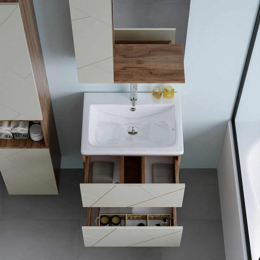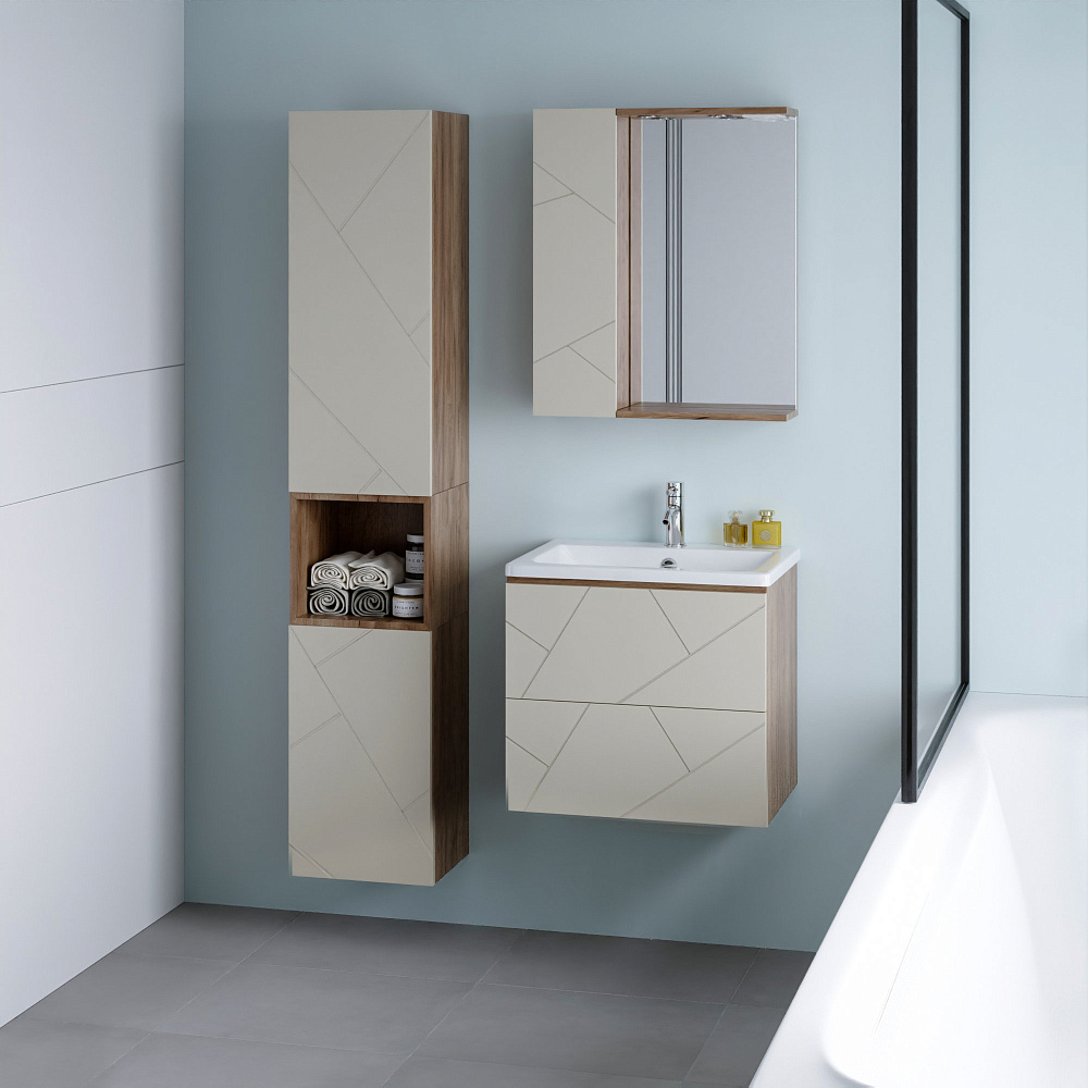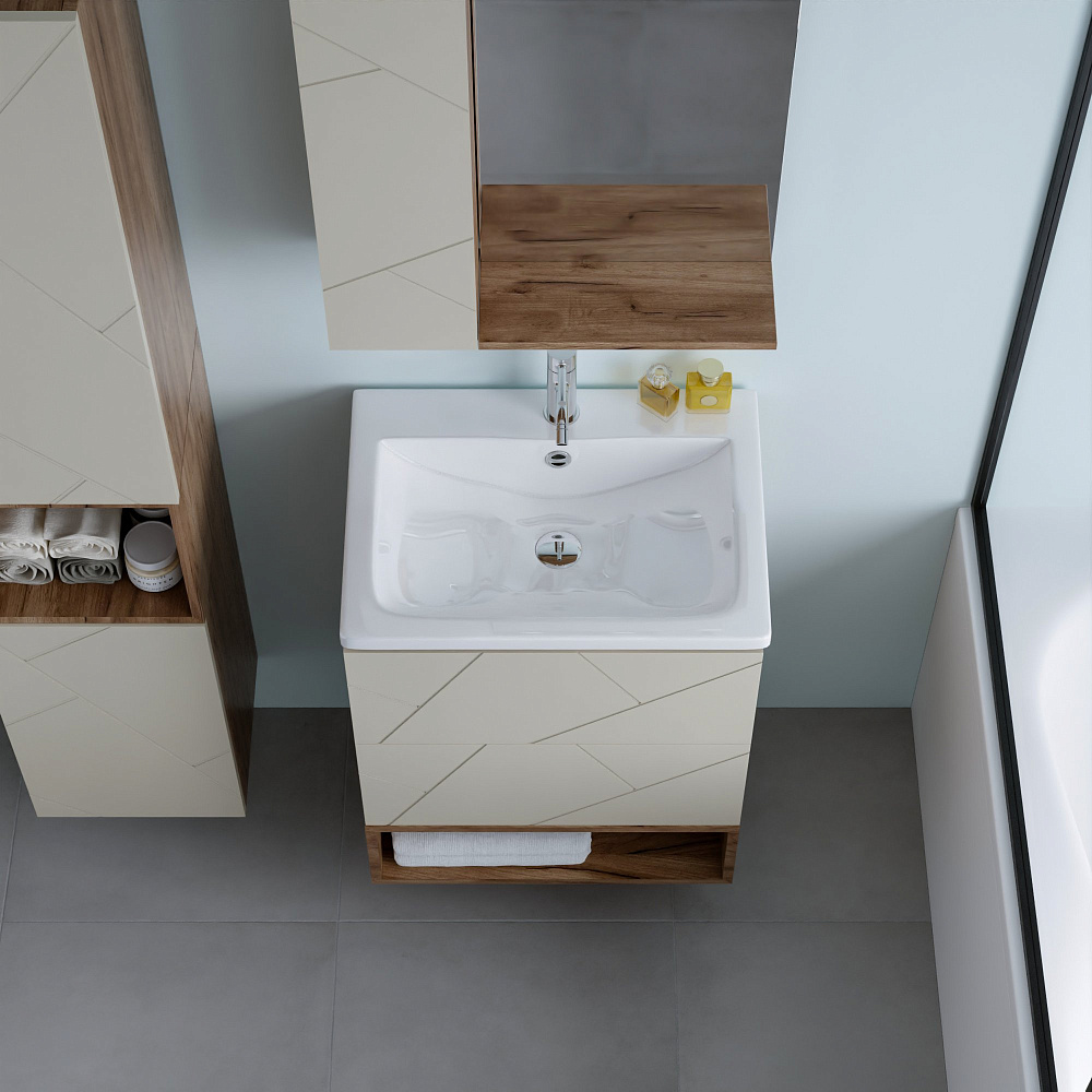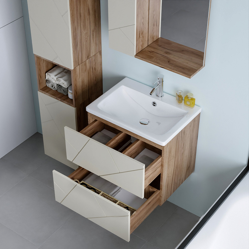 Тумба под раковину «Бриклаер Кристалл 60 латте, дуб крафт табачный» — это не просто функциональный элемент ванной комнаты, а настоящее украшение интерьера. Она выполнена из качественных материалов, которые обеспечивают долговечность и надёжность конструкции. Тумба имеет универсальный цвет и текстуру, что позволяет ей гармонично сочетаться с любым стилем оформления ванной комнаты. Благодаря своему лаконичному и стильному дизайну она станет изюминкой вашего интерьера. Отсутствие задней стенки обеспечивает лёгкость подводки труб, что упрощает процесс монтажа и позволяет сэкономить время и силы при установке. Навешивание тумбы на регулируемые навесы гарантирует её надёжное крепление и возможность точной настройки положения, что обеспечивает удобство использования и продлевает срок службы изделия. Эта тумба — идеальное решение для тех, кто ценит качество, стиль и функциональность. Она станет незаменимым помощником в организации пространства ванной комнаты и подарит вам радость от использования на долгие годы.