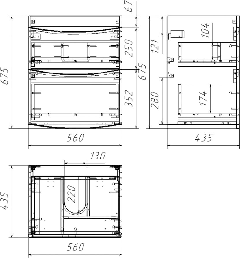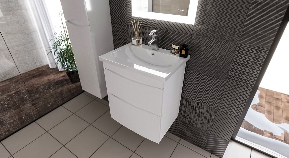 Тумба под раковину без столешницы Бриклаер Вега 60 с двумя ящиками, белая