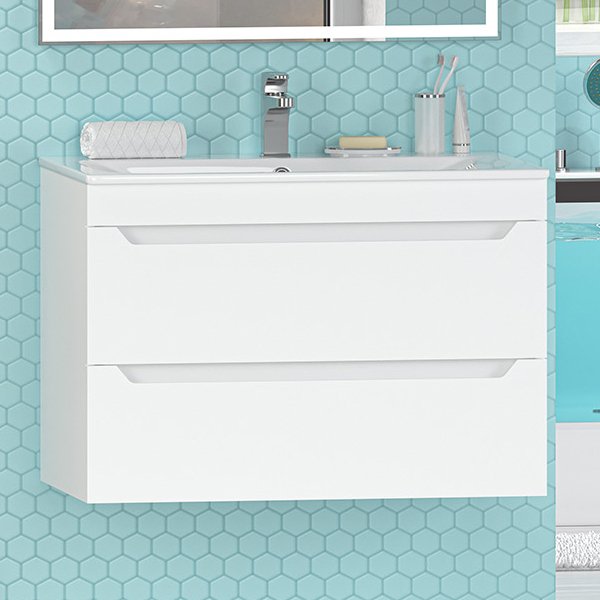 Тумба под раковину Misty Бриз 80 подвесная, белая матовая