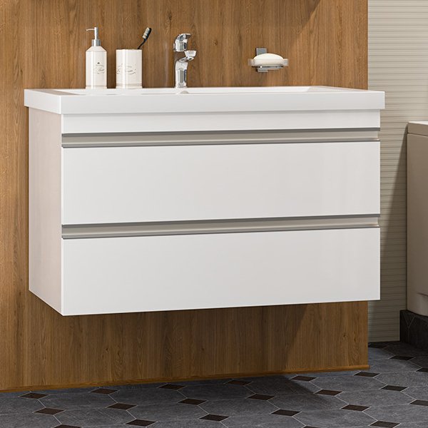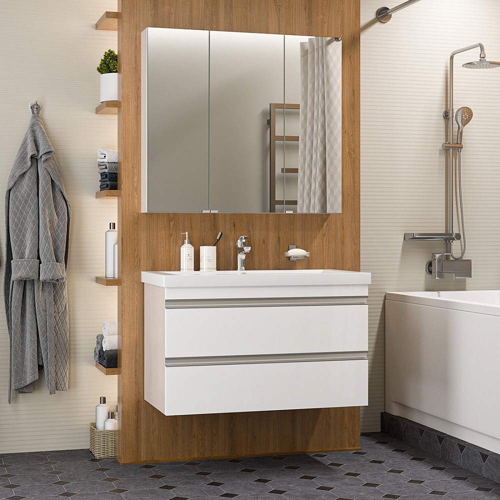 Тумба под раковину Misty Ингрид 90 подвесная, белая эмаль