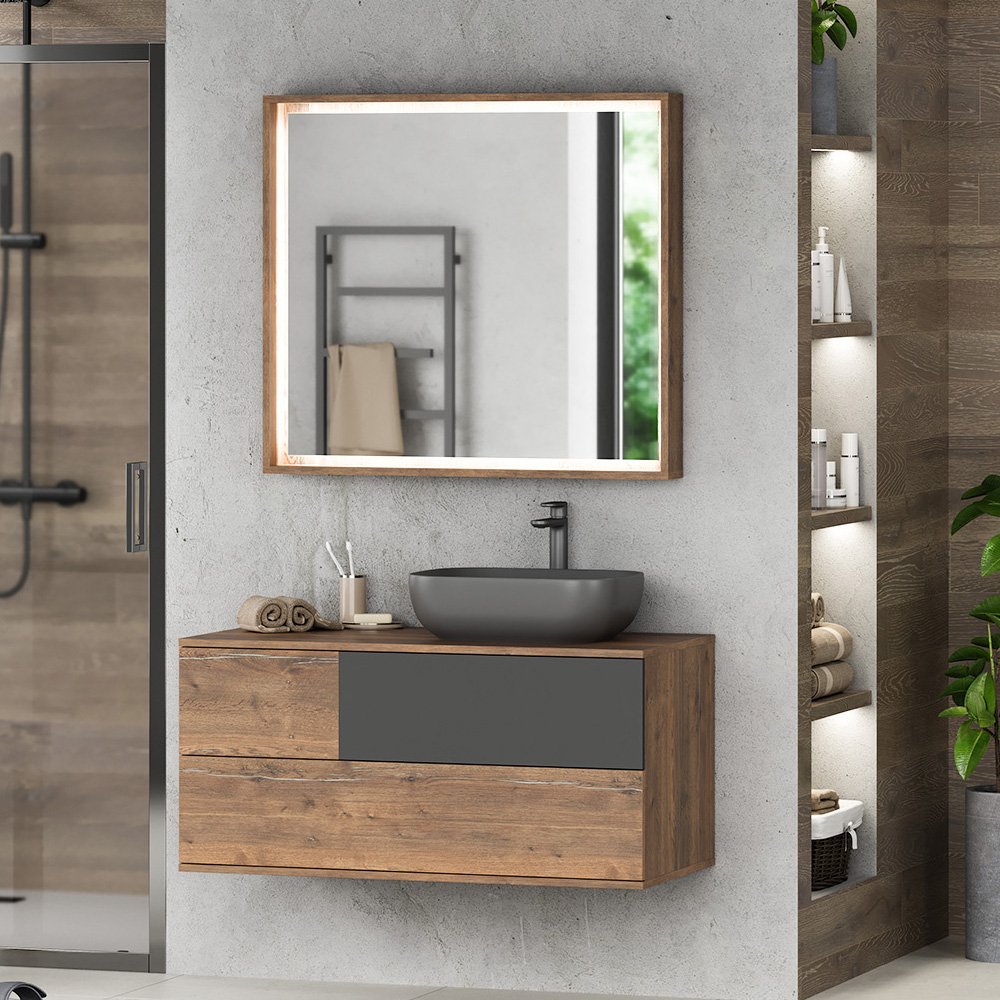 Тумба под раковину Misty Коломбо 100 R дуб галифакс, антрацит