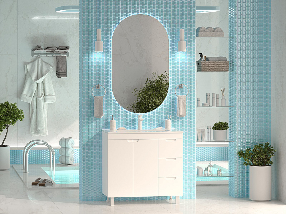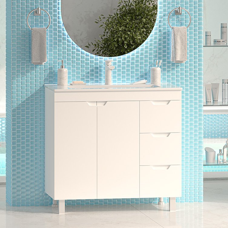 Отзывы о Тумба под раковину Misty Оптима 90 напольная, белая, 3 ящика, 2 дверцы