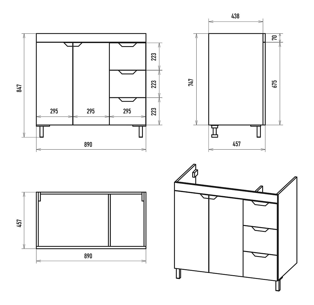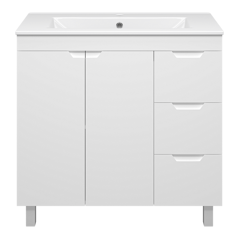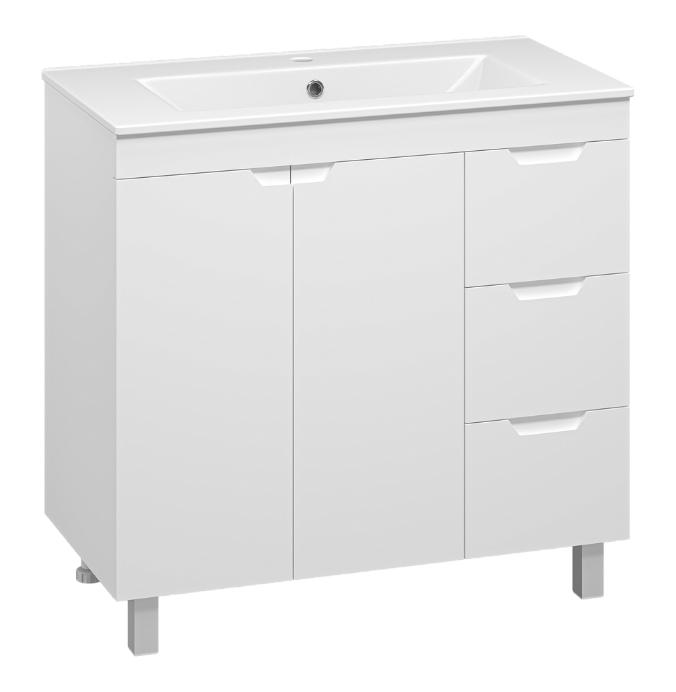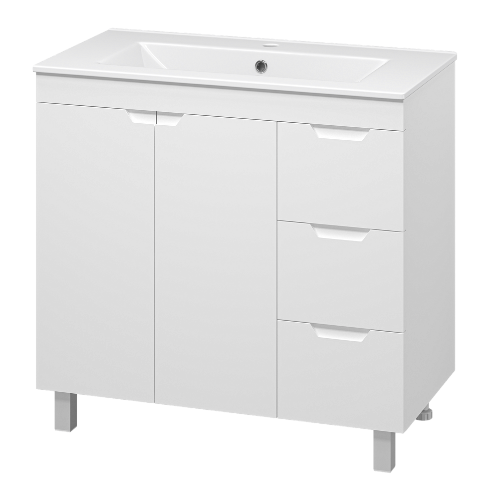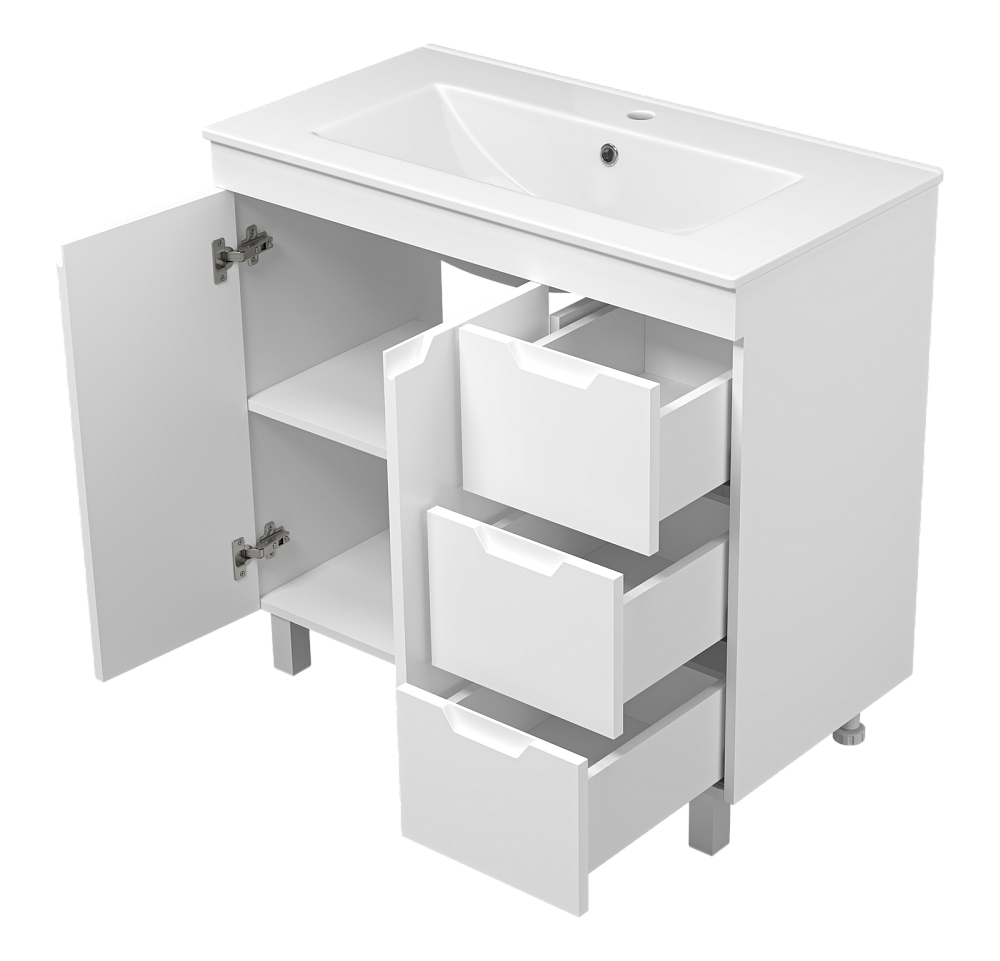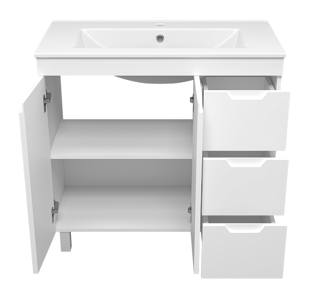 Тумба под раковину Misty Оптима 90 напольная, белая, 3 ящика, 2 дверцы
