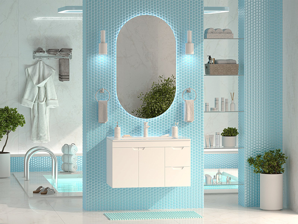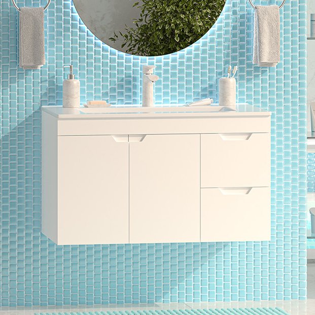 Отзывы о Тумба под раковину Misty Оптима 90 подвесная, белая, 2 ящика, 2 дверцы