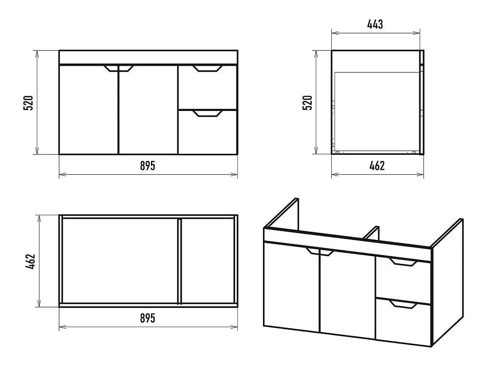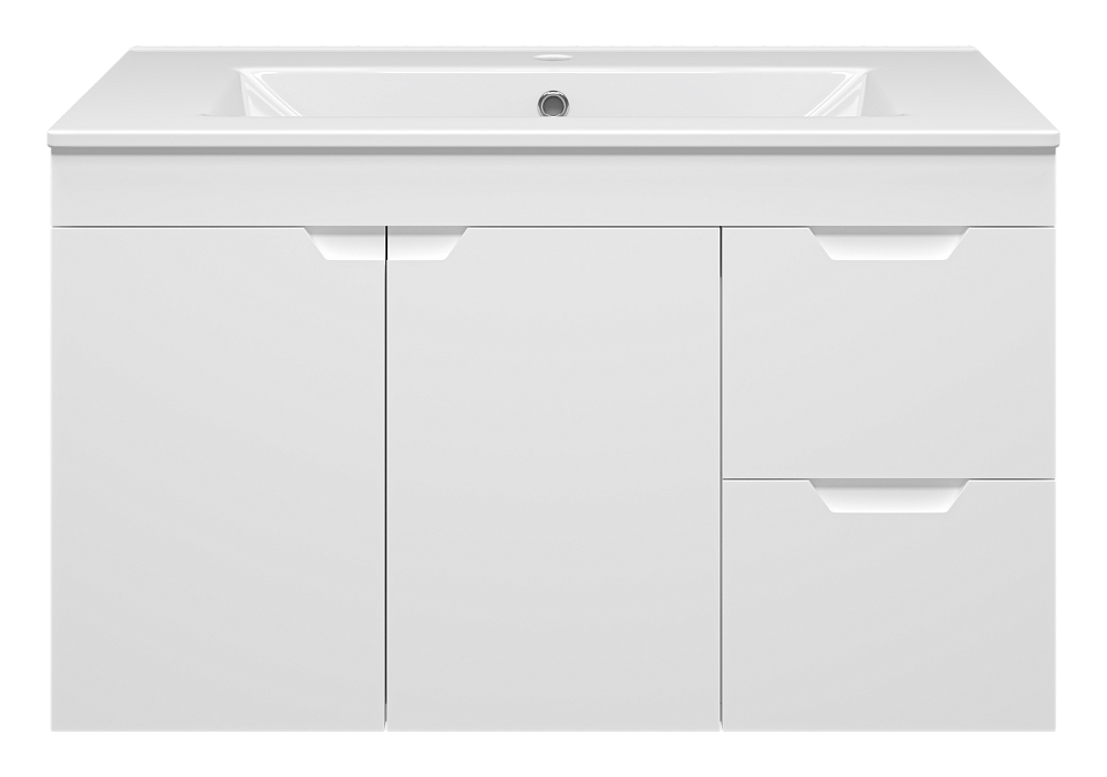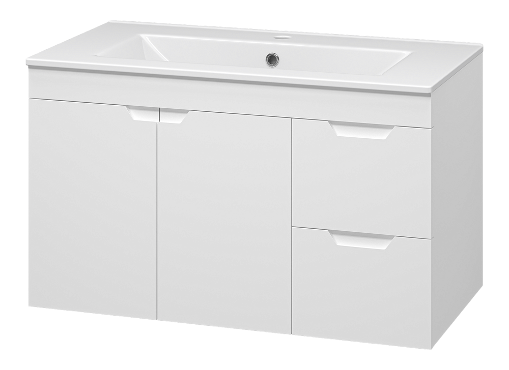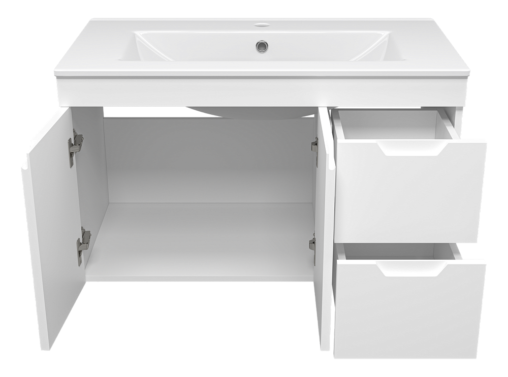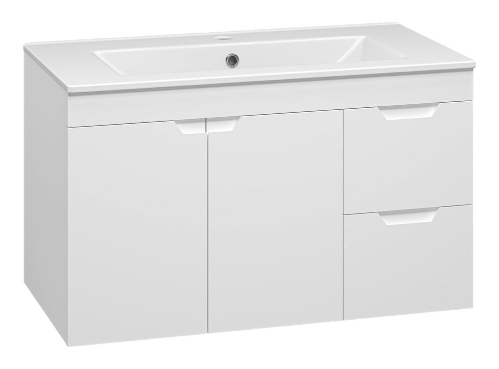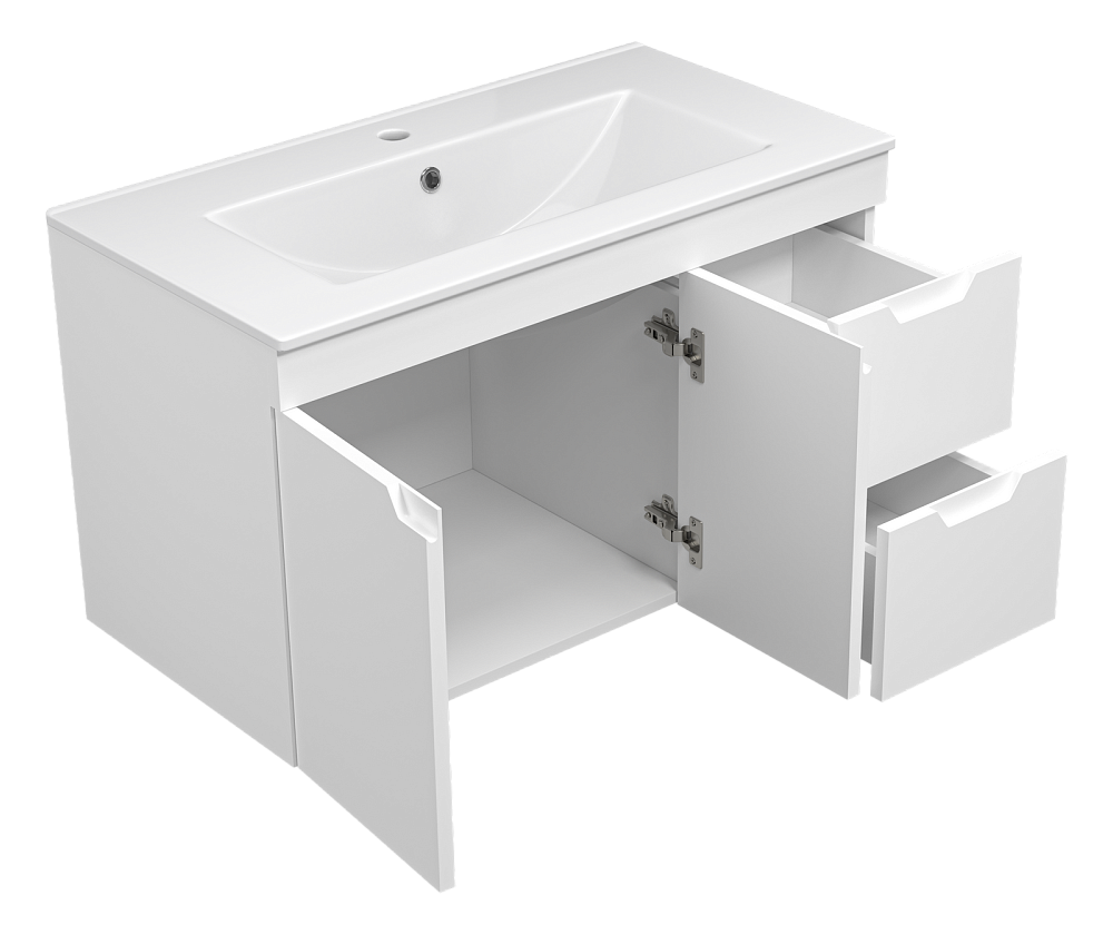 Тумба под раковину Misty Оптима 90 подвесная, белая, 2 ящика, 2 дверцы