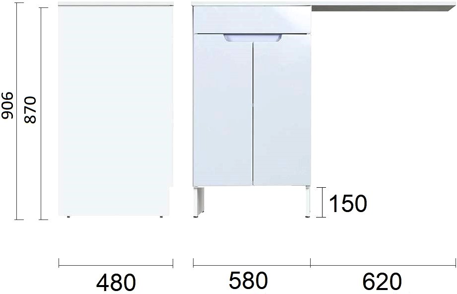 Тумба под раковину без столешницы Orange Sistema 60 белый глянец, под стиральную машину