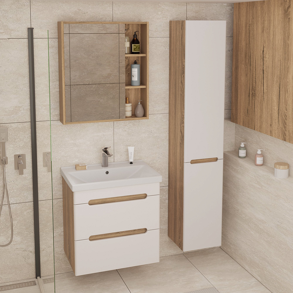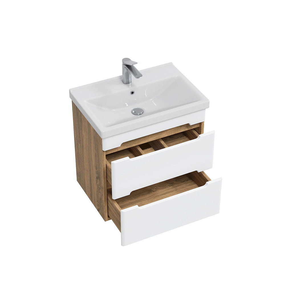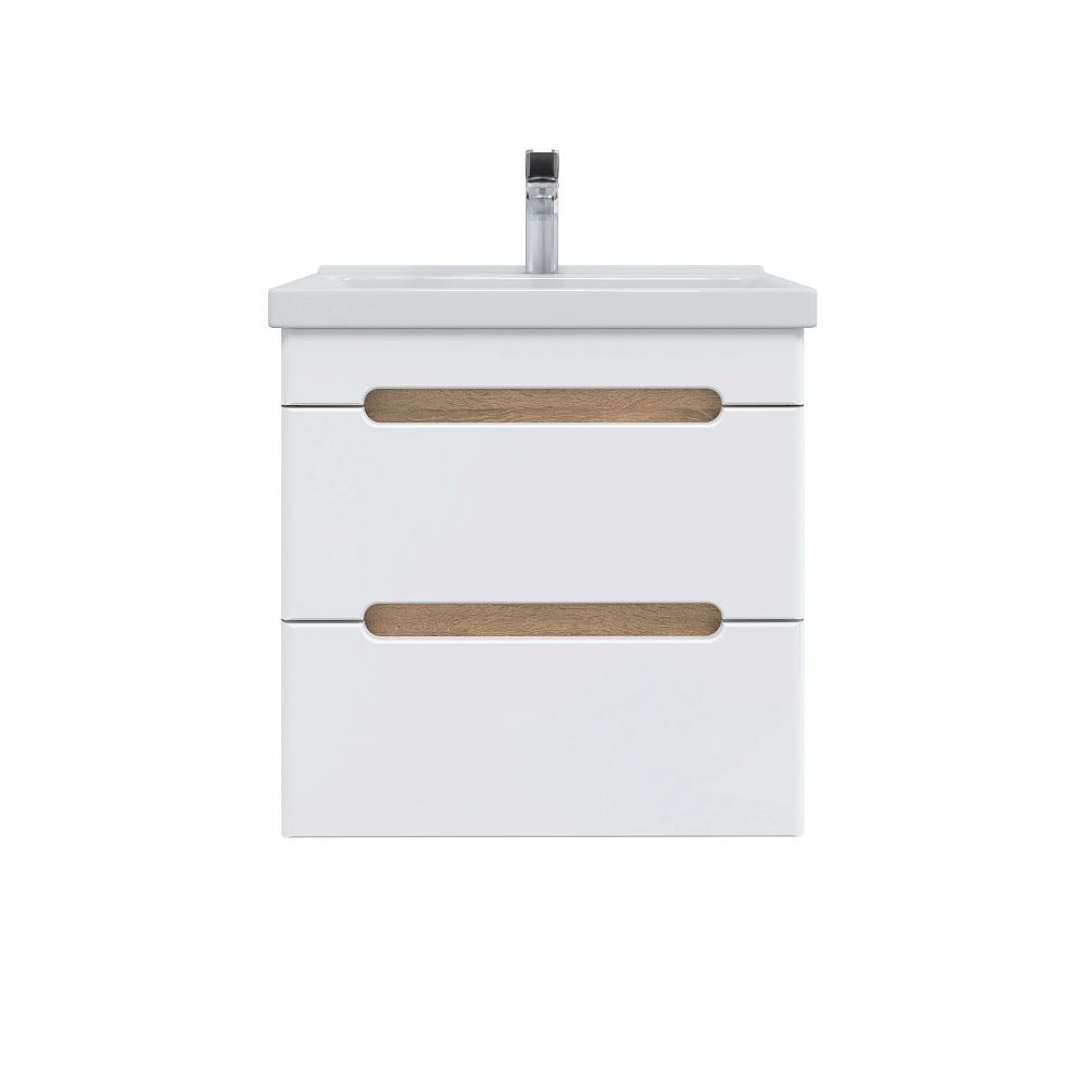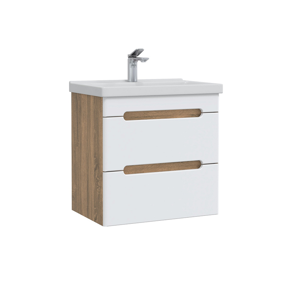 Тумба под раковину без столешницы SanStar Diva 55 подвесная, матовая белая, дуб вотан