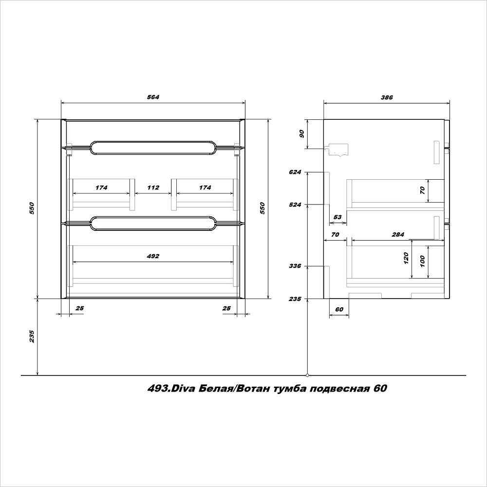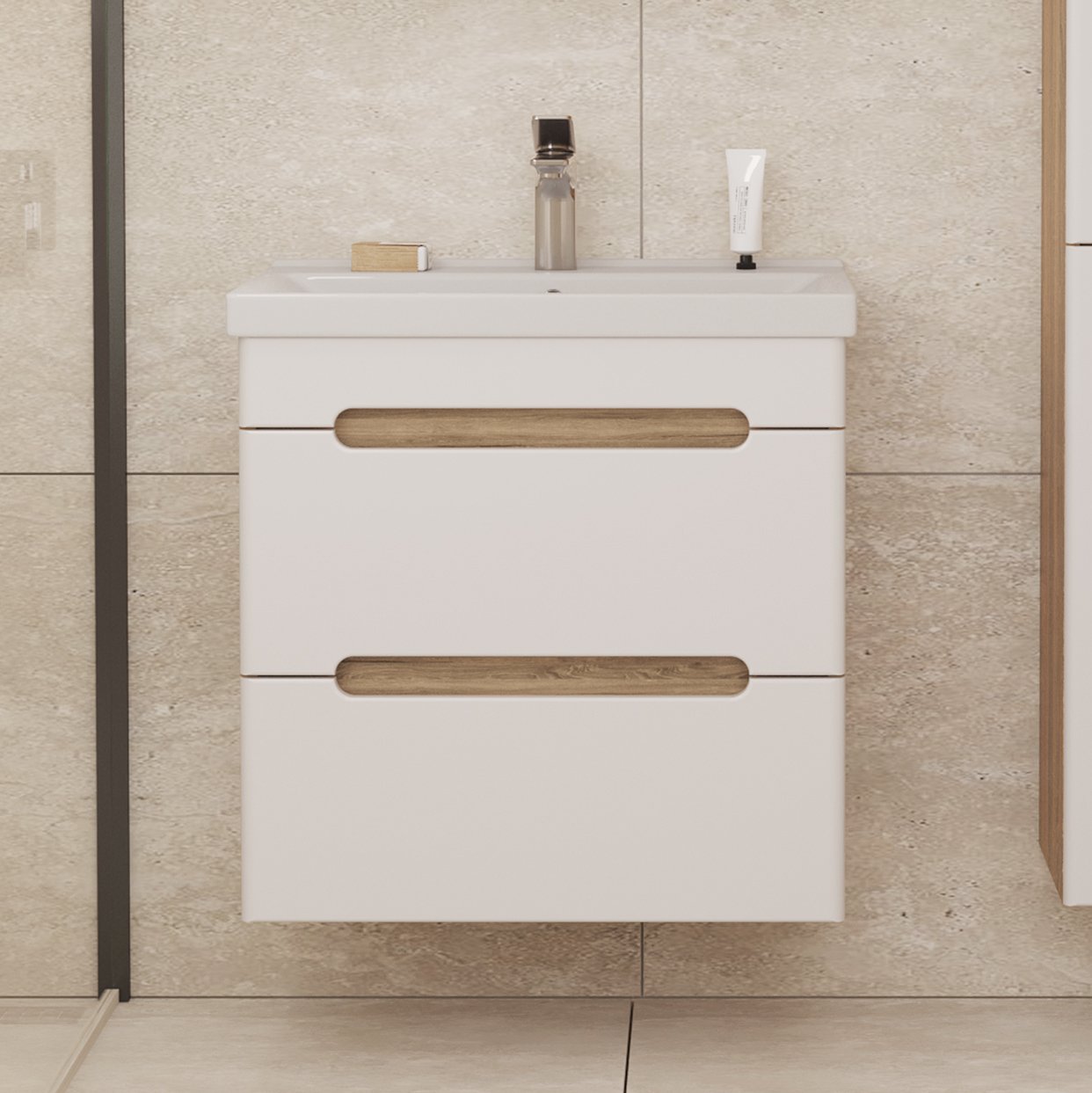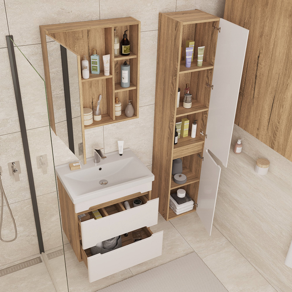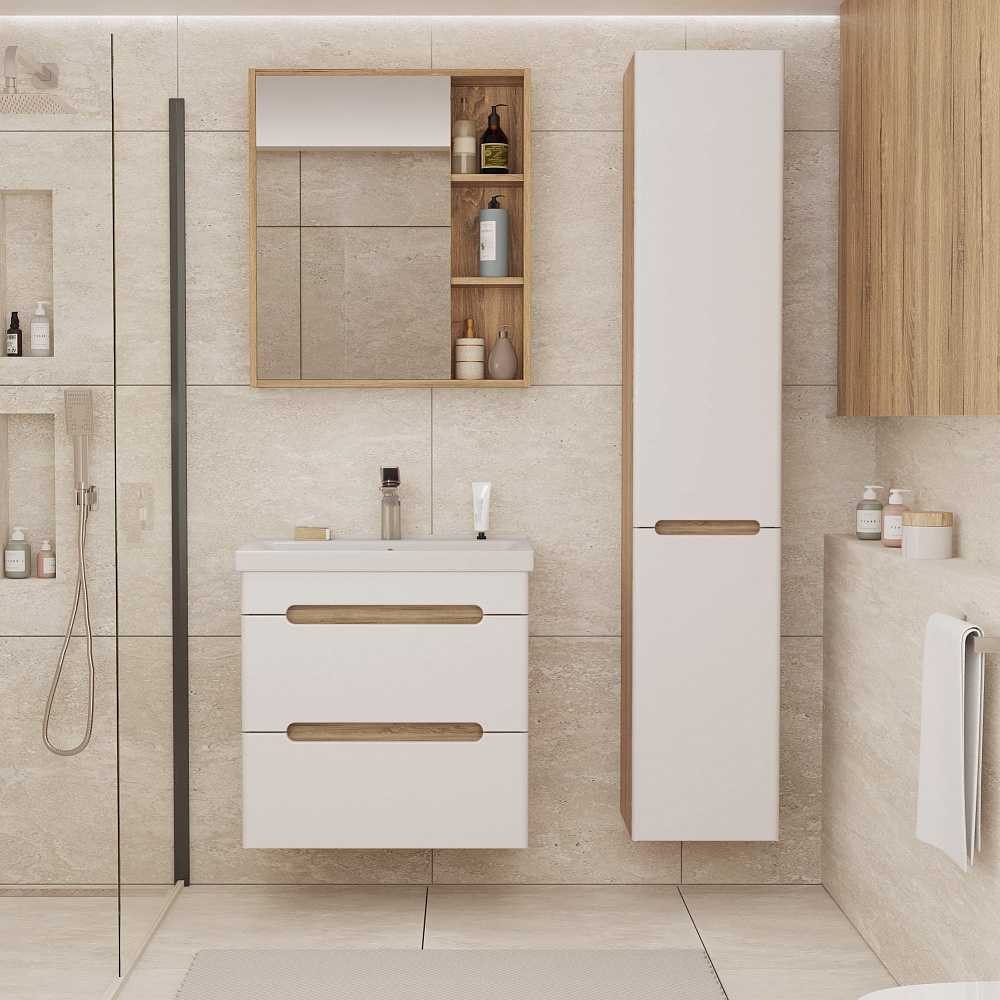 Тумба под раковину без столешницы SanStar Diva 55 подвесная, матовая белая, дуб вотан