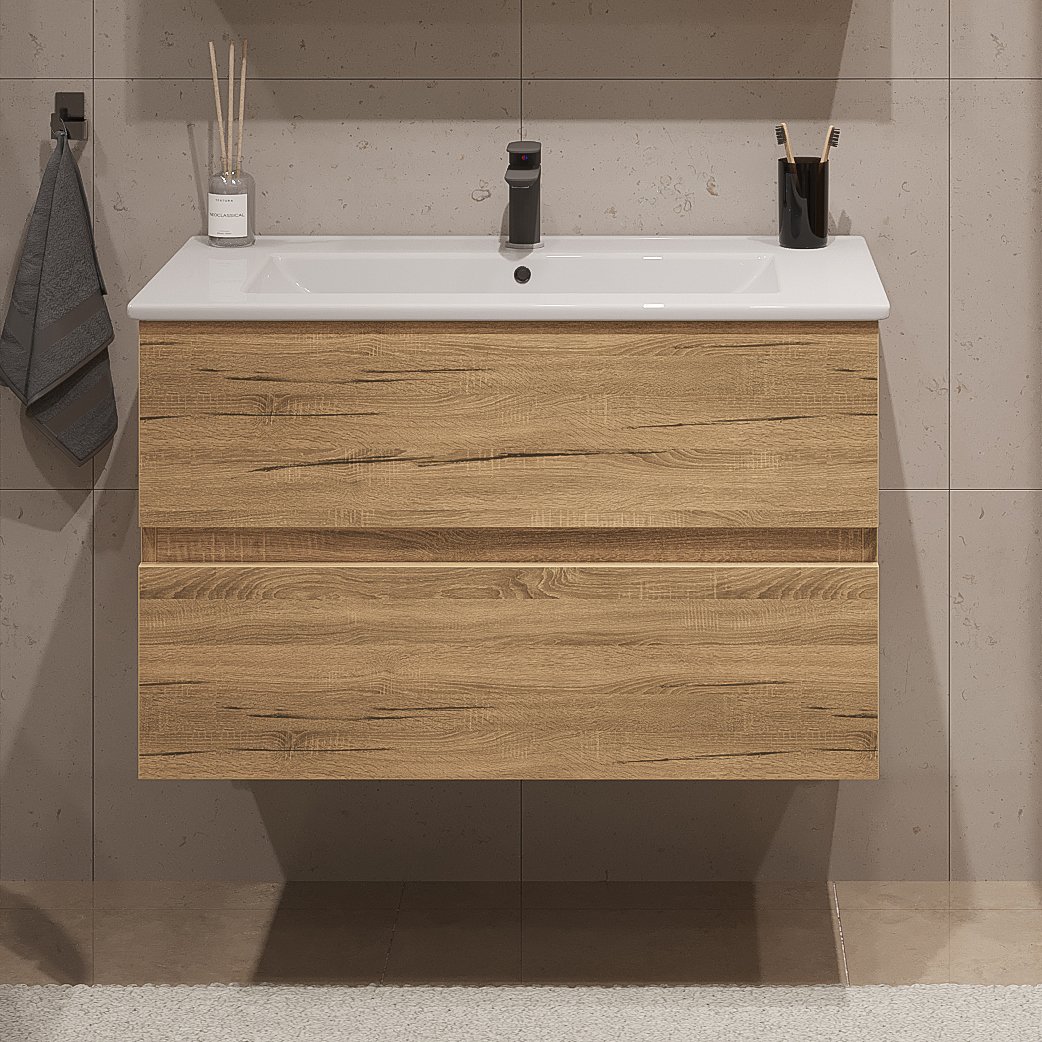 Тумба под раковину без столешницы SanStar Lavanti 90 подвесная, дуб вотан