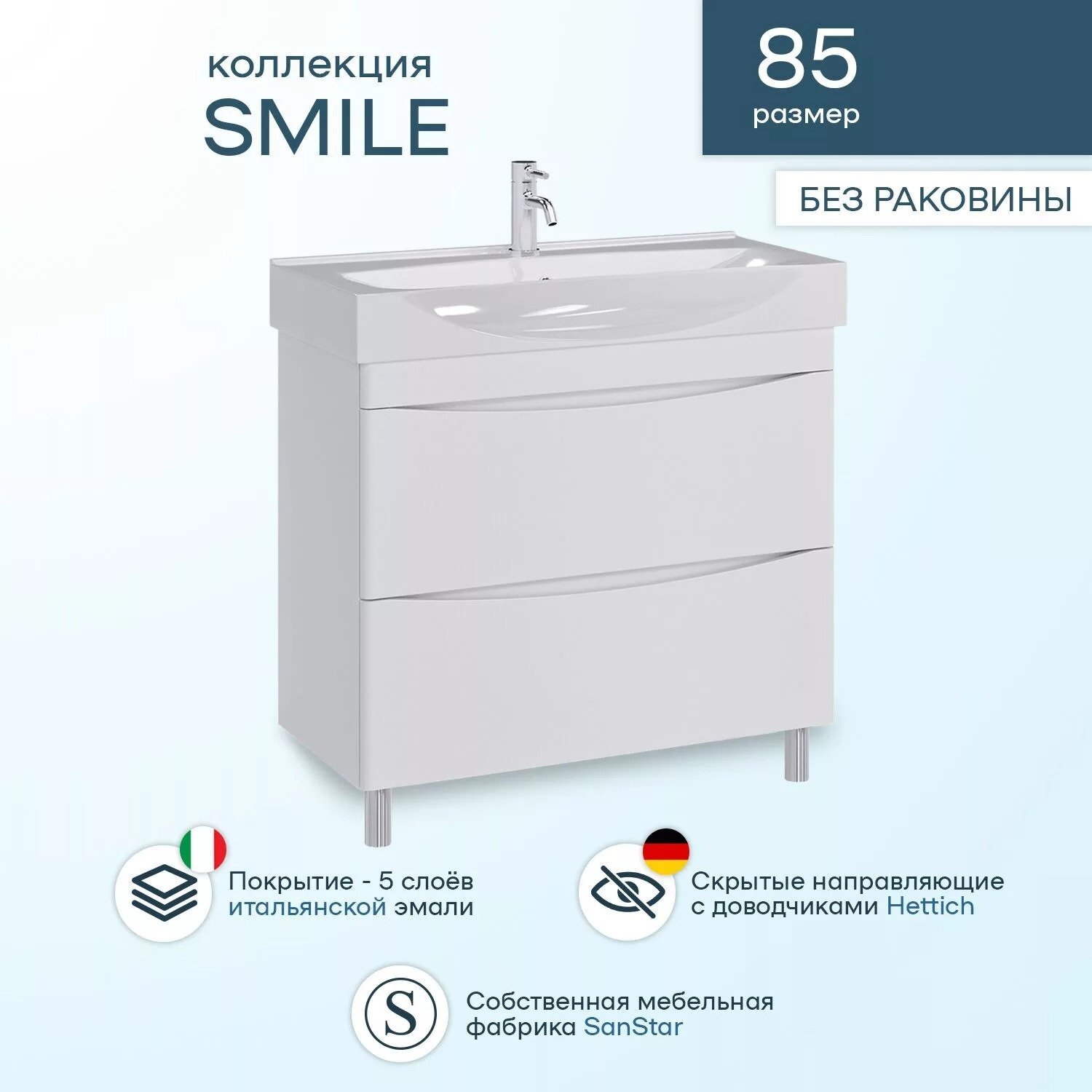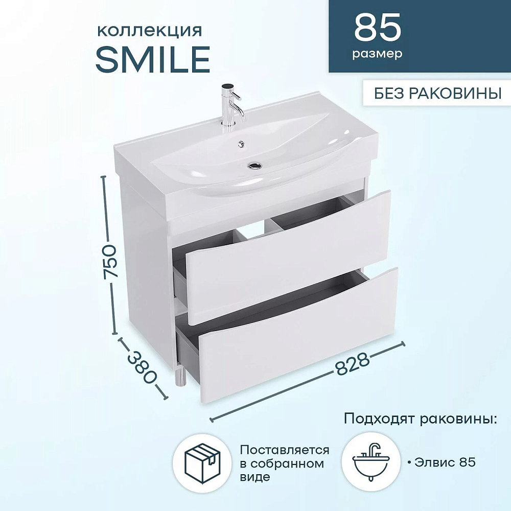 Тумба под раковину SanStar Smile 85 напольная, белая