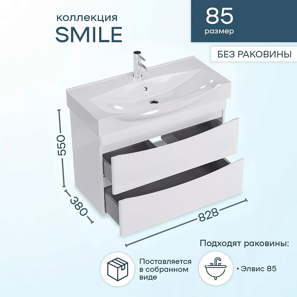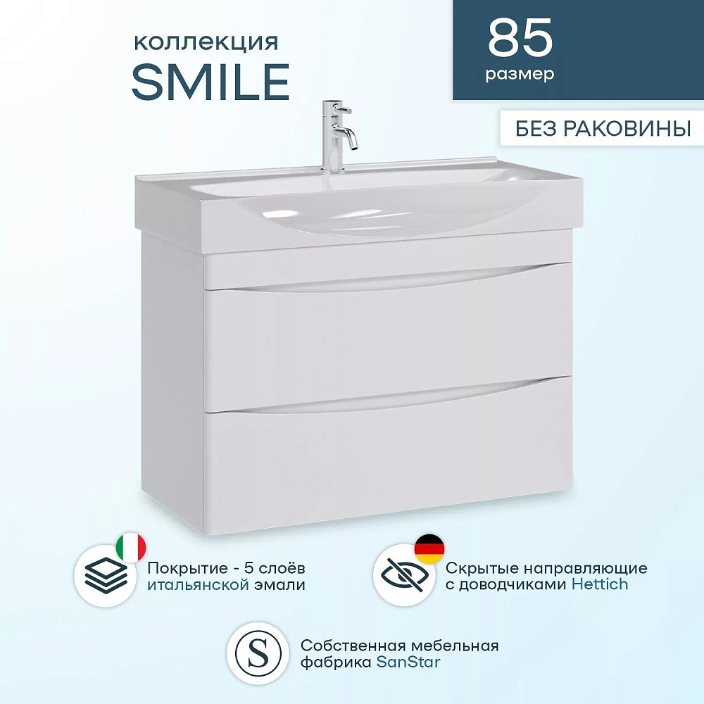 Тумба под раковину SanStar Smile 85 подвесная, белая