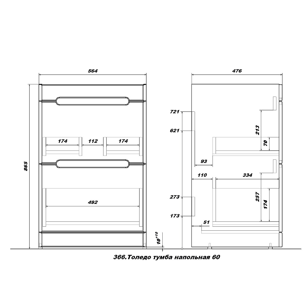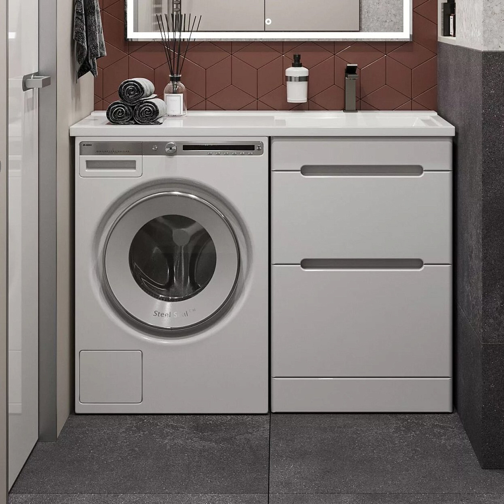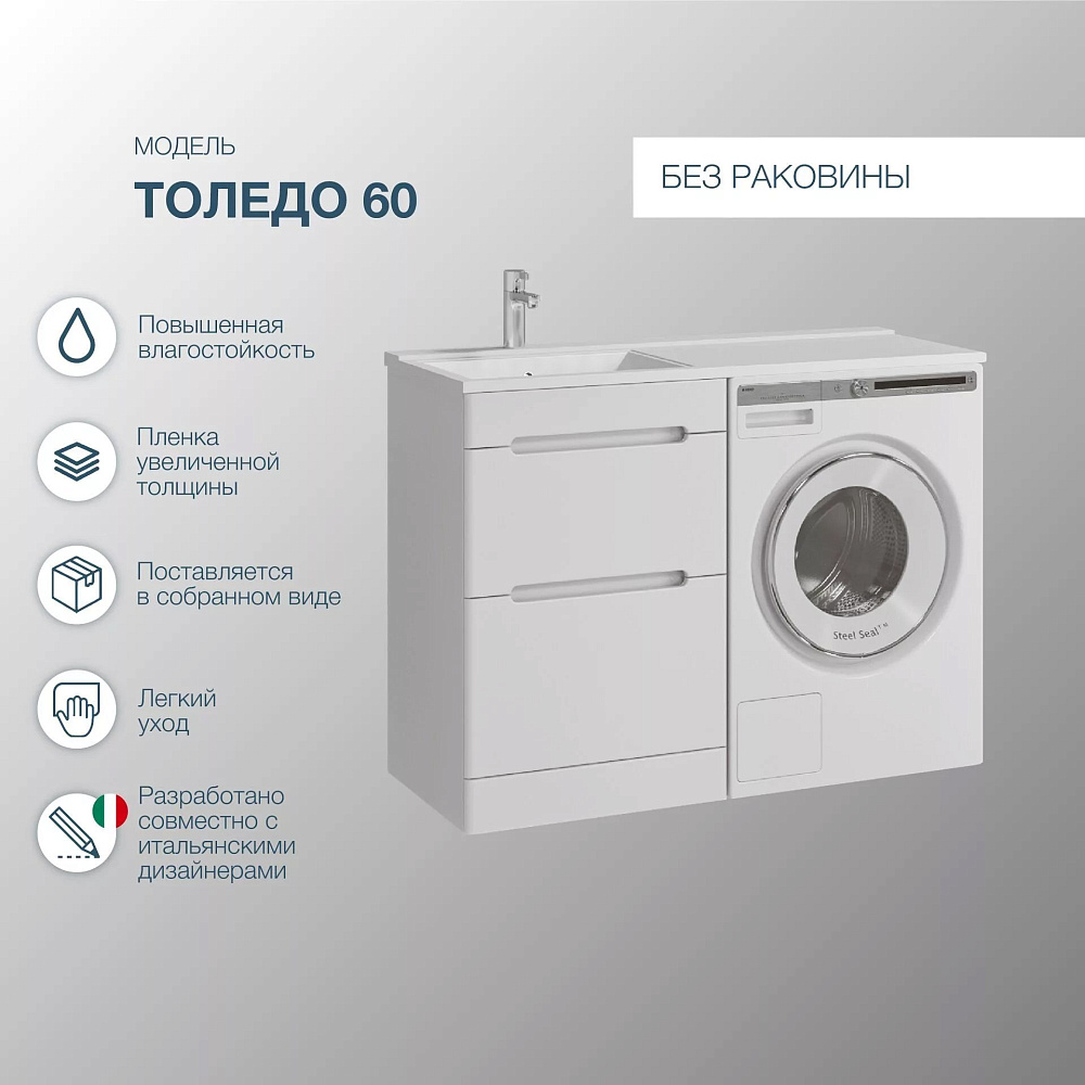 Тумба под раковину без столешницы SanStar Толедо 55 напольная, под стиральную машину, глянцевая белая