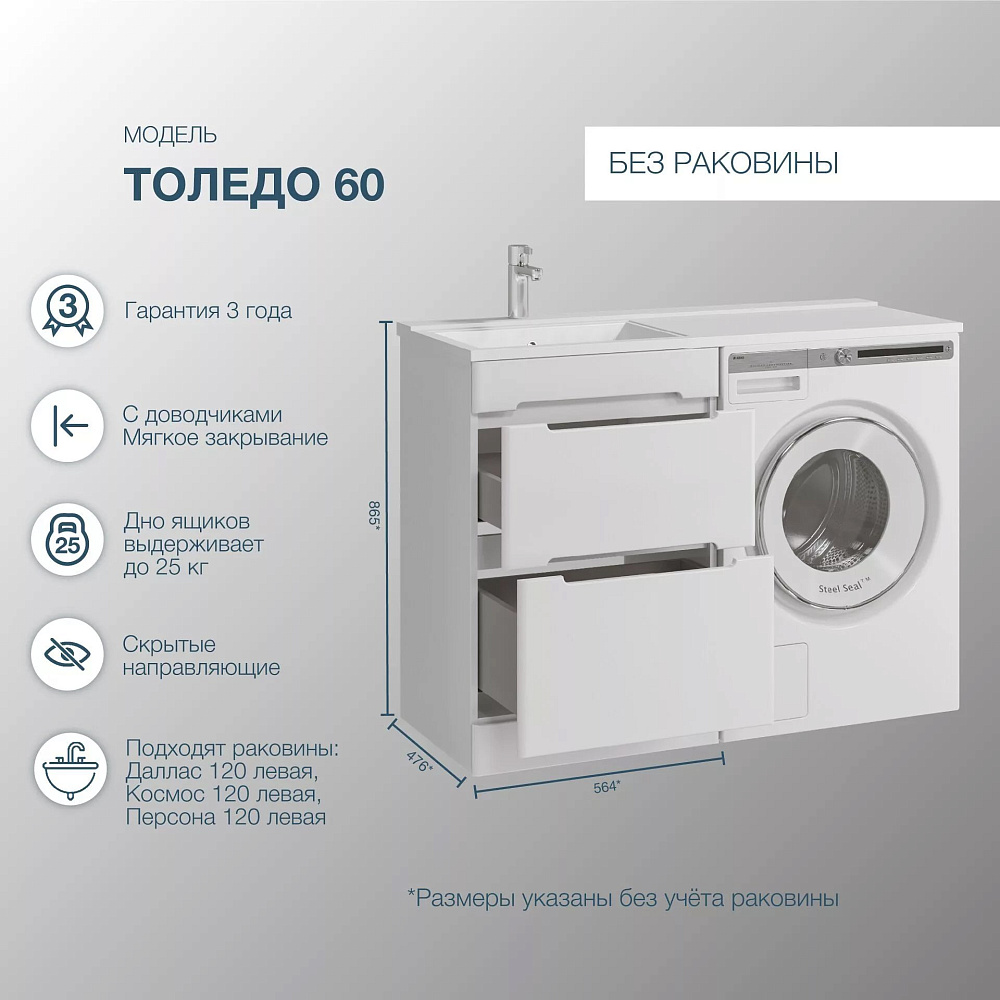 Отзывы о Тумба под раковину без столешницы SanStar Толедо 55 напольная, под стиральную машину, глянцевая белая