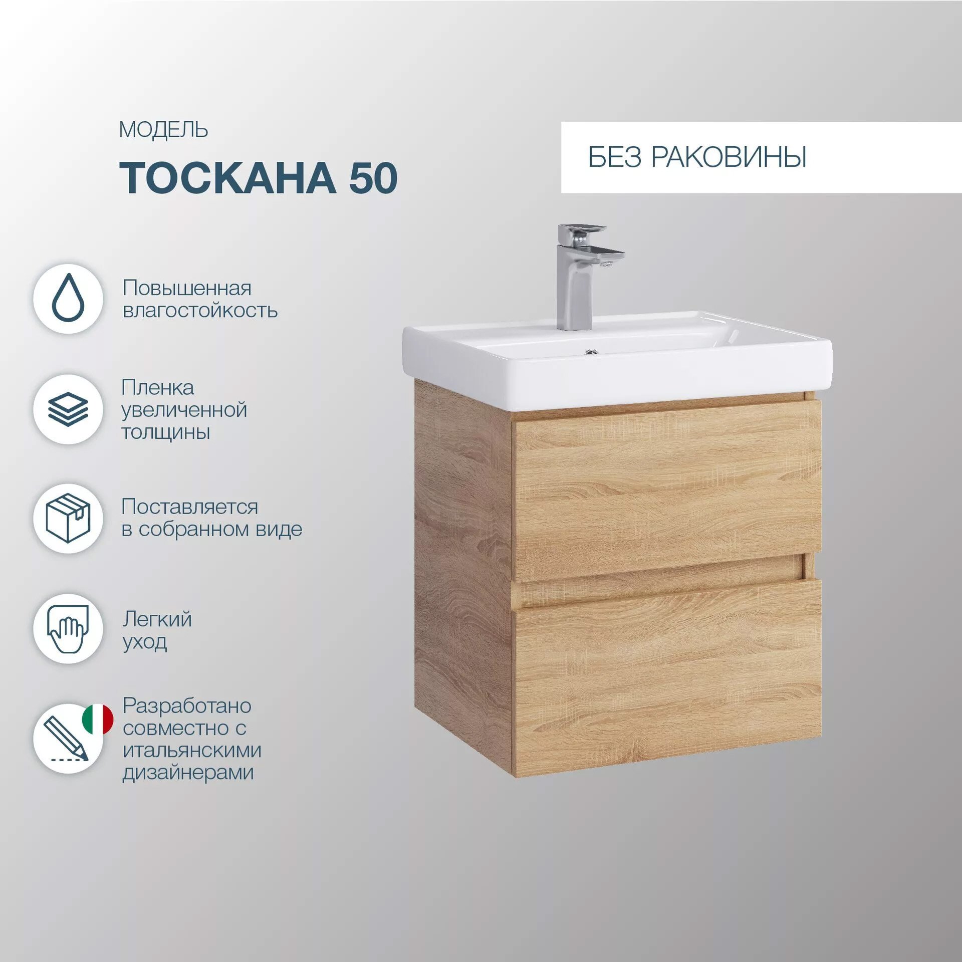 Тумба под раковину без столешницы SanStar Тоскана 45 подвесная, дуб сонома светлый