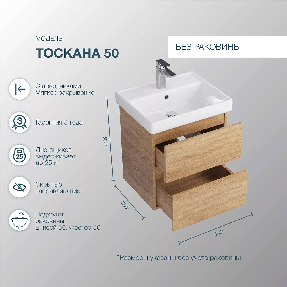 Отзывы о Тумба под раковину без столешницы SanStar Тоскана 45 подвесная, дуб сонома светлый