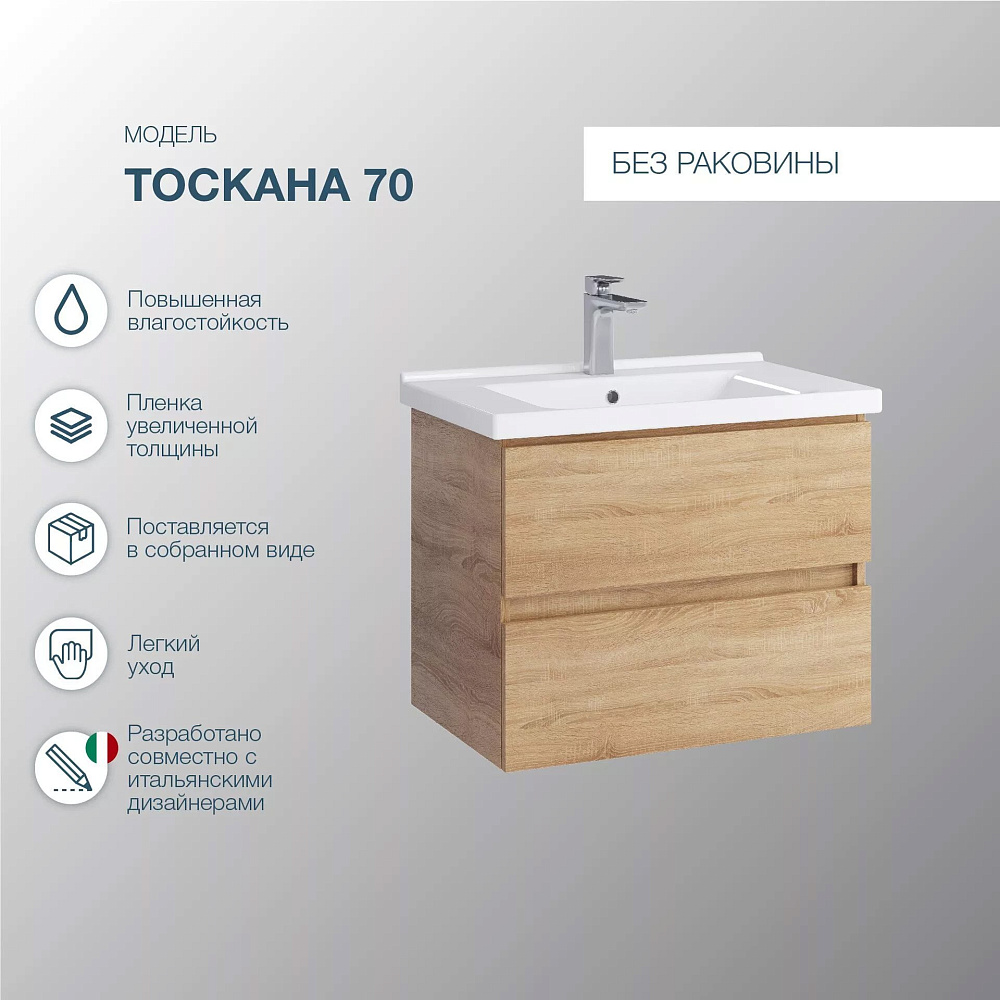 Тумба под раковину без столешницы SanStar Тоскана 65 подвесная, дуб сонома светлый