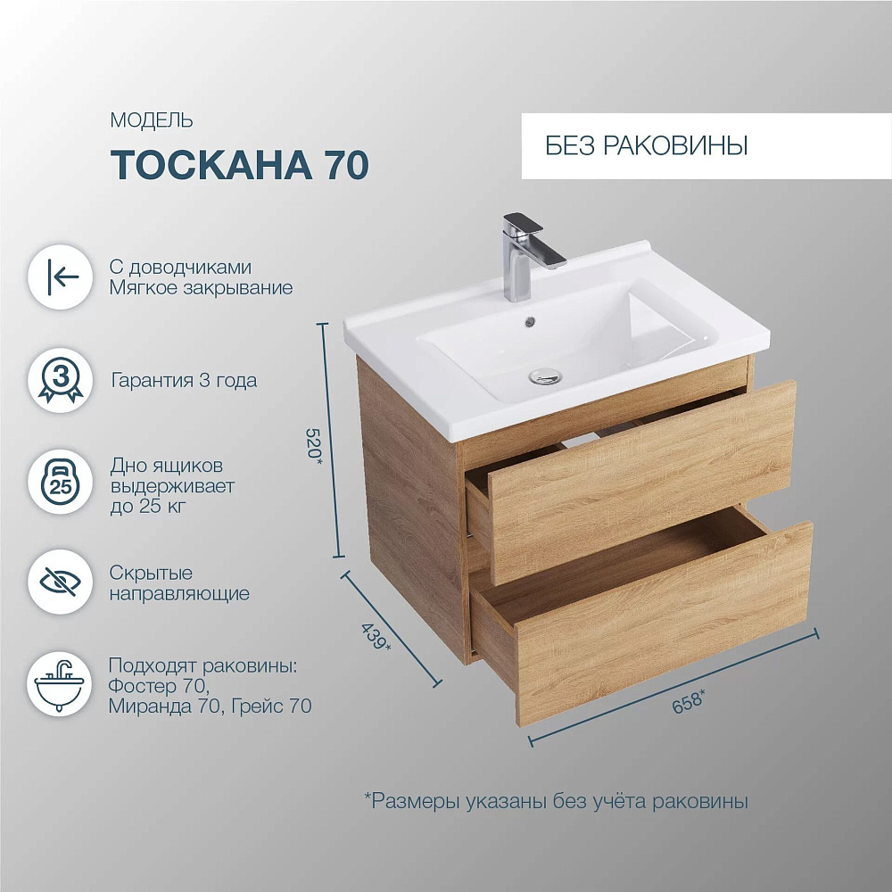 Отзывы о Тумба под раковину без столешницы SanStar Тоскана 65 подвесная, дуб сонома светлый