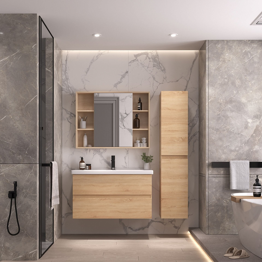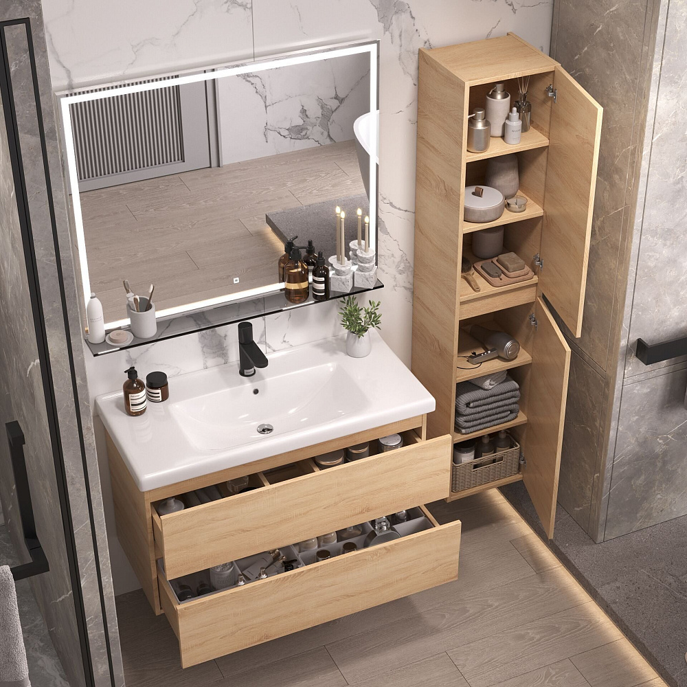 Тумба под раковину без столешницы SanStar Тоскана 95 подвесная, дуб сонома светлый