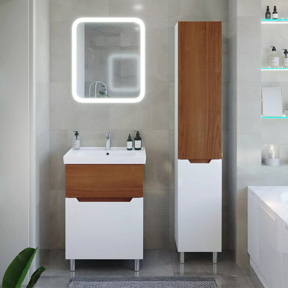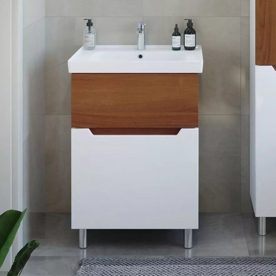 Тумба под раковину без столешницы SanStar Valencia 55 напольная, орех ноче эко, белая