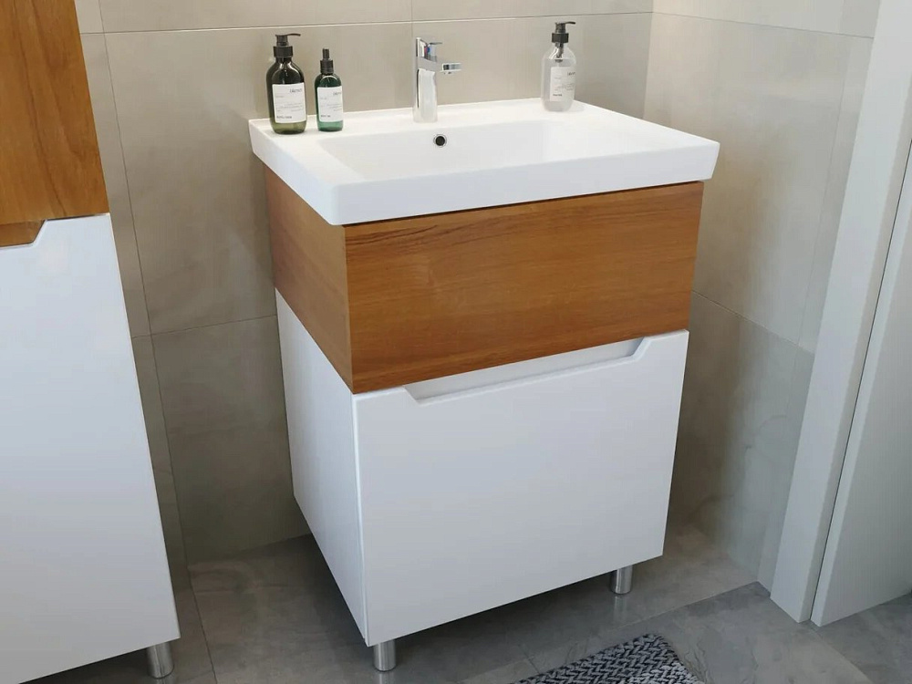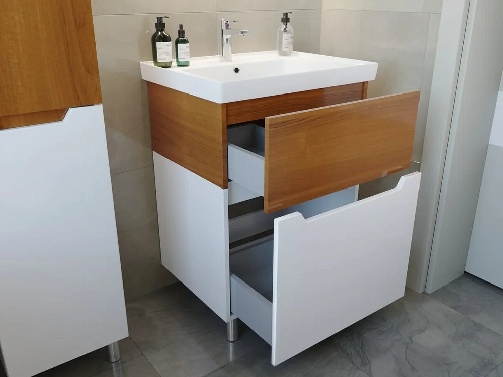 Отзывы о Тумба под раковину без столешницы SanStar Valencia 55 напольная, орех ноче эко, белая