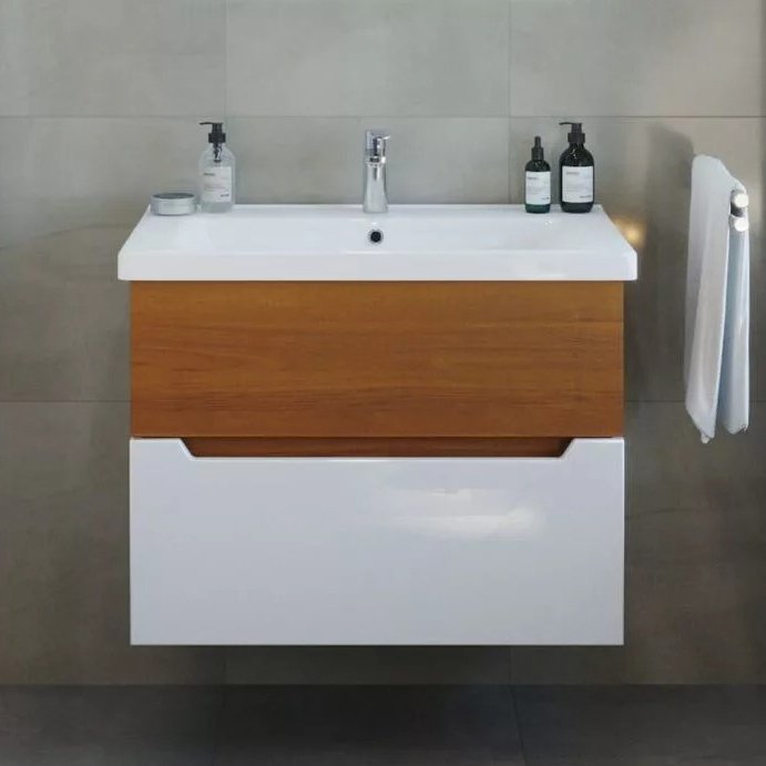 Отзывы о Тумба под раковину без столешницы SanStar Valencia 75 подвесная, орех ноче эко, белая