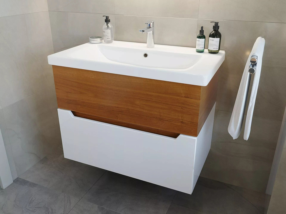 Тумба под раковину без столешницы SanStar Valencia 75 подвесная, орех ноче эко, белая
