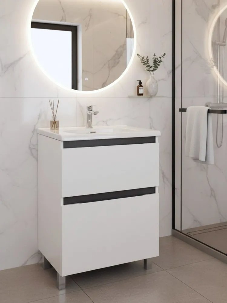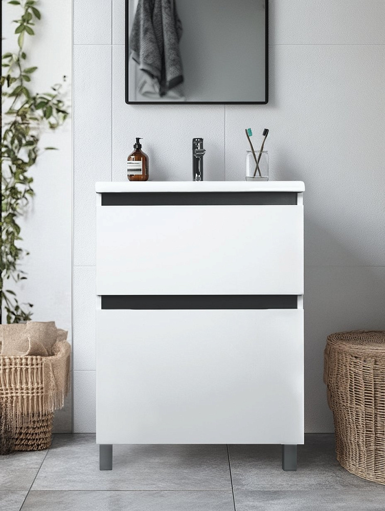 Тумба под раковину без столешницы Tokito Nabegataki 60 напольная, глянцевая белая