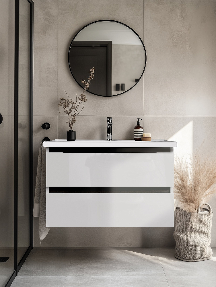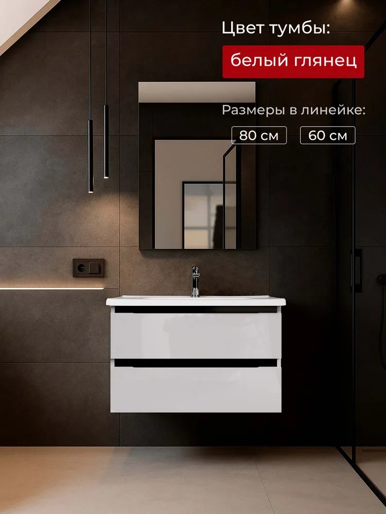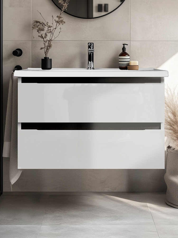 Тумба под раковину без столешницы Tokito Nabegataki 80 подвесная, глянцевая белая