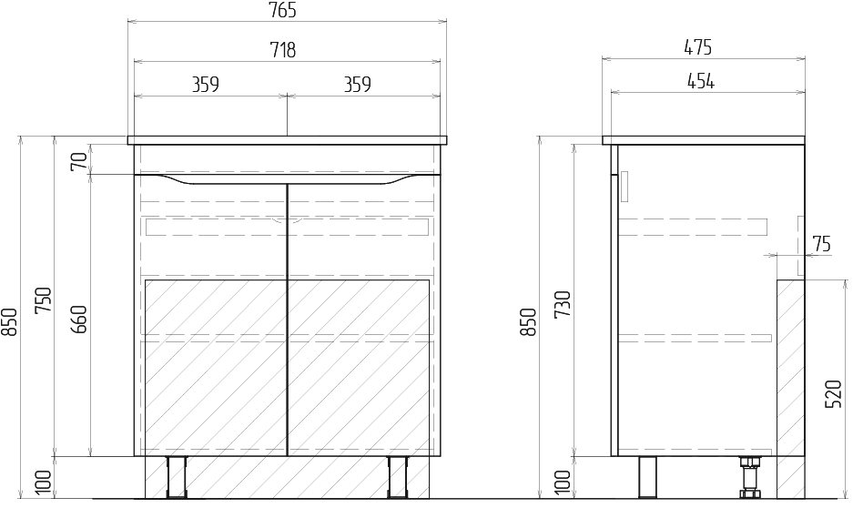 Тумба под раковину без столешницы Vigo Grani 70 напольная, 2 дверцы, белая