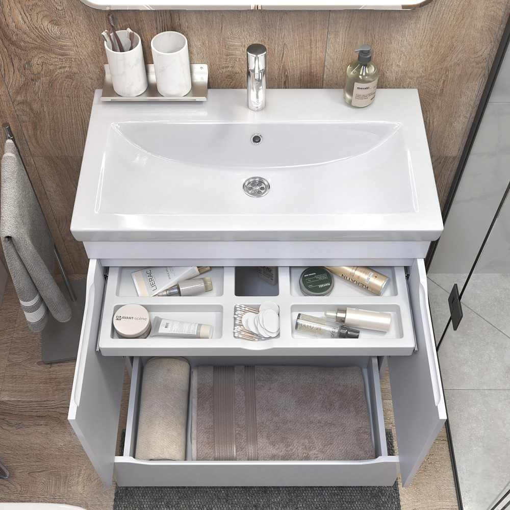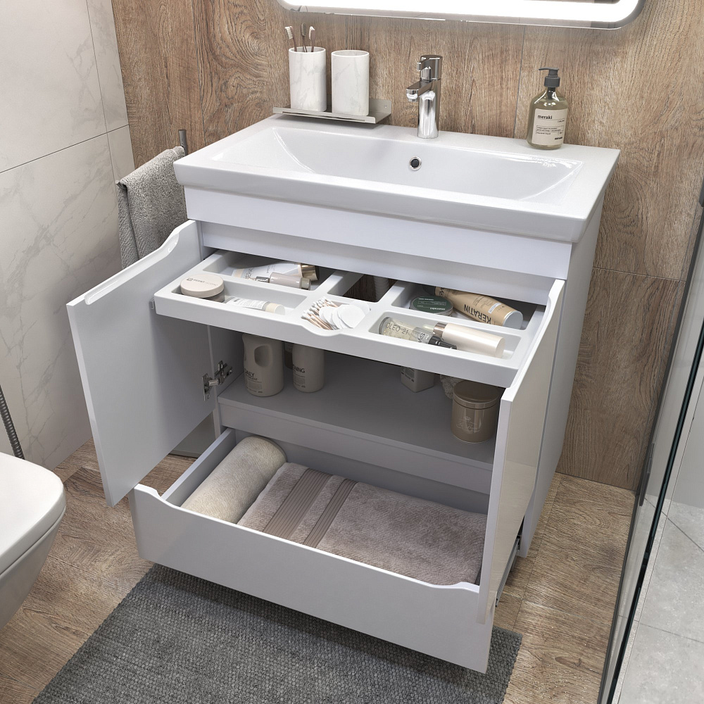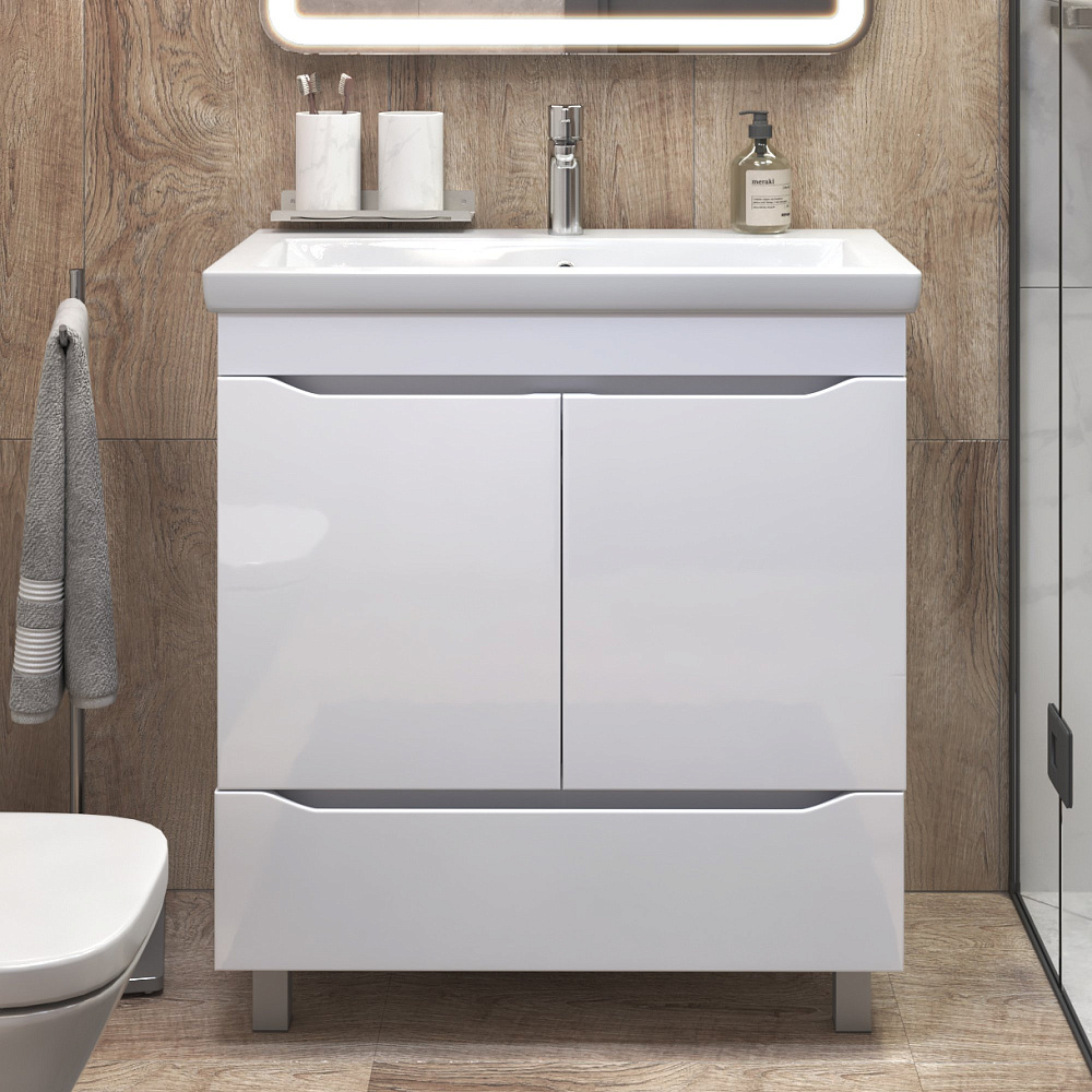 Тумба под раковину без столешницы Vigo Grani 75 белая, для раковины Cersanit Como 80
