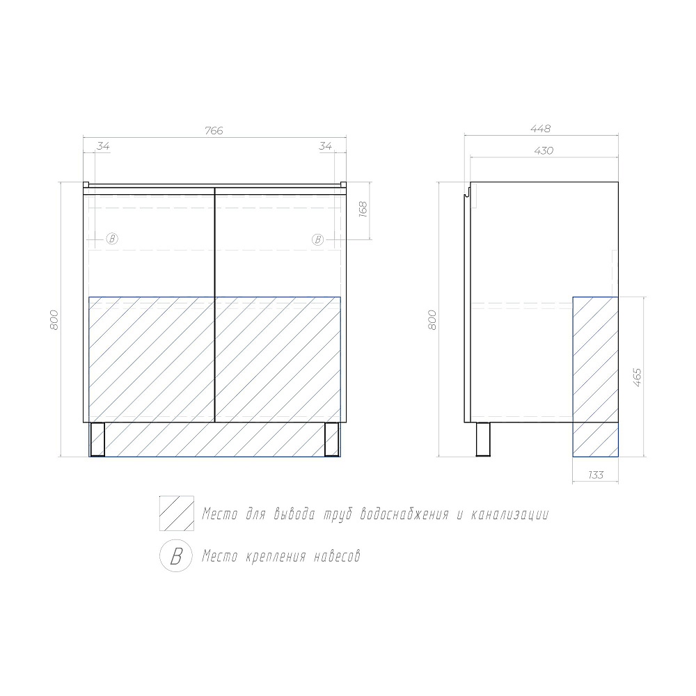 Тумба под раковину без столешницы Vigo Yuma 75 напольная, 2 дверцы, дуб давос