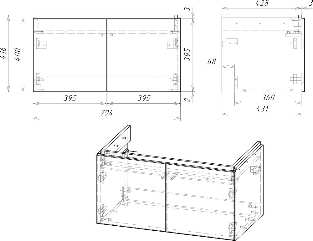 Тумба под раковину без столешницы Cersanit Цвет (Colour) 80
