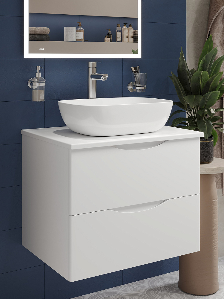 Тумба под раковину со столешницей BOND Куб 60 подвесная, матовая белая