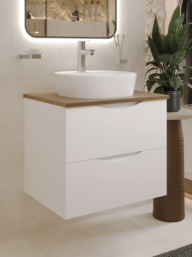 Тумба под раковину со столешницей BOND Куб 60 подвесная, матовая белая, под дерево