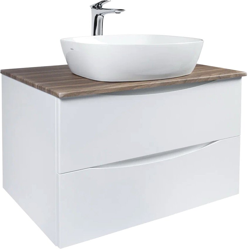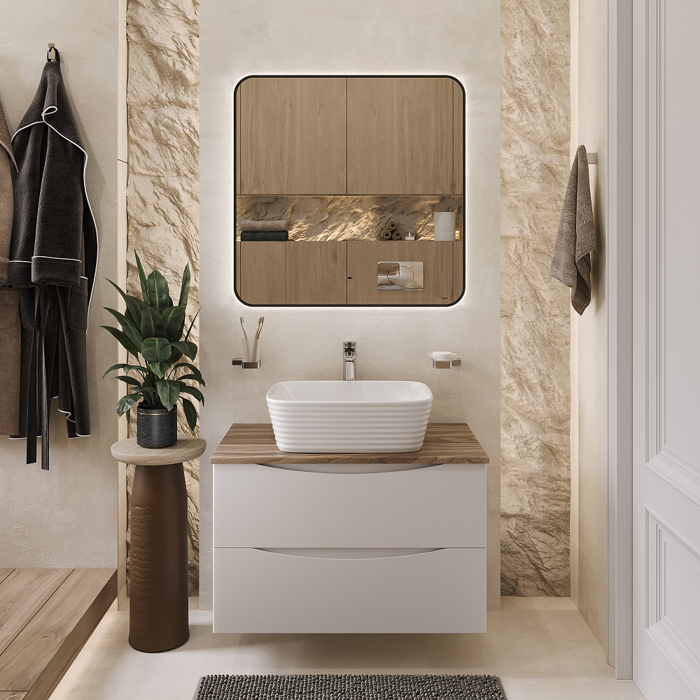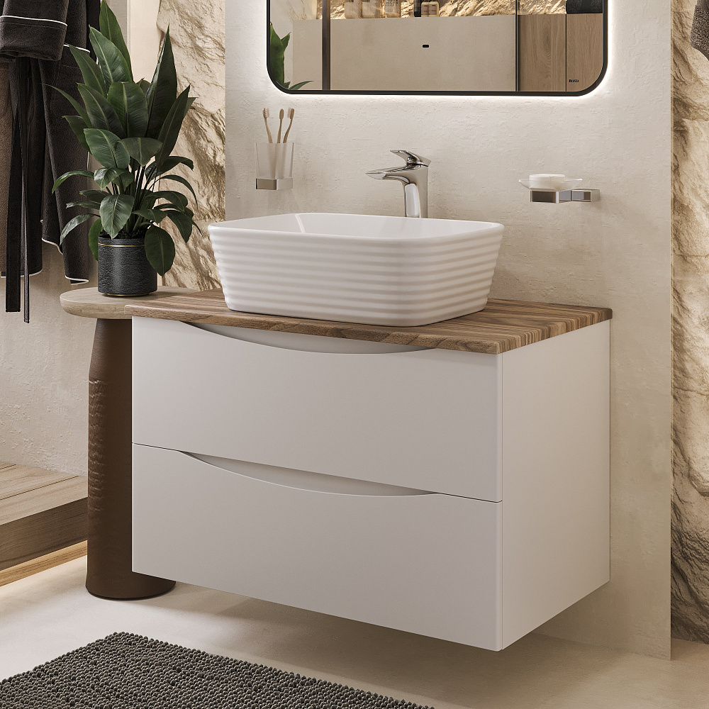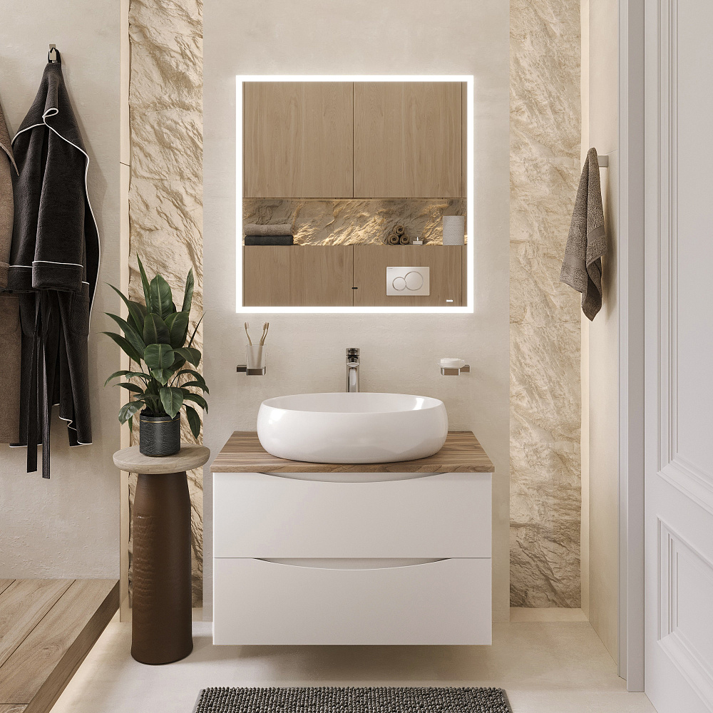 Тумба под раковину со столешницей BOND Куб 80 подвесная, матовая белая, под дерево