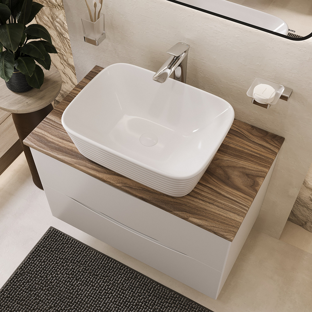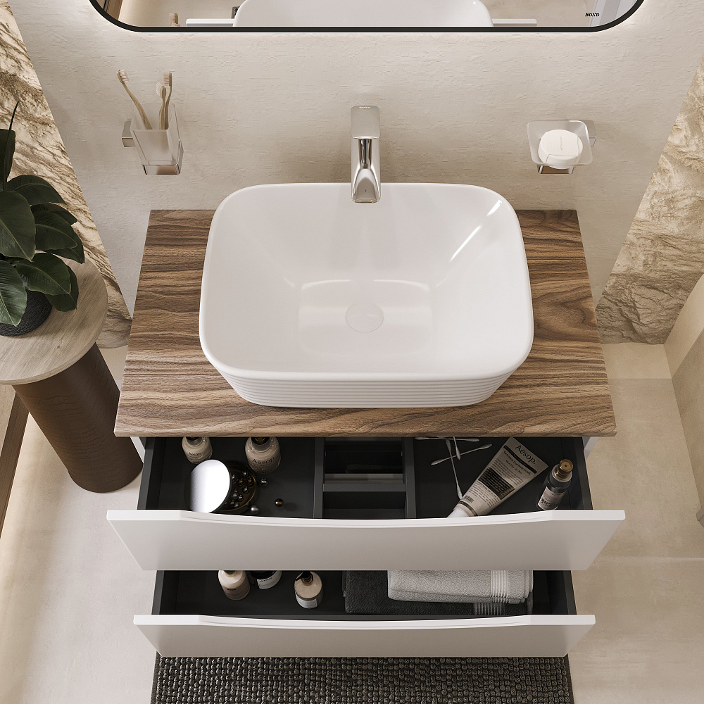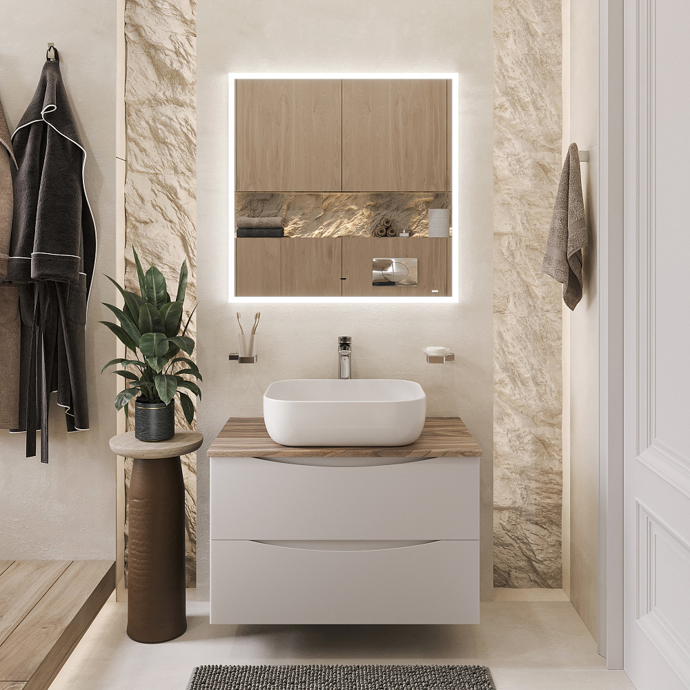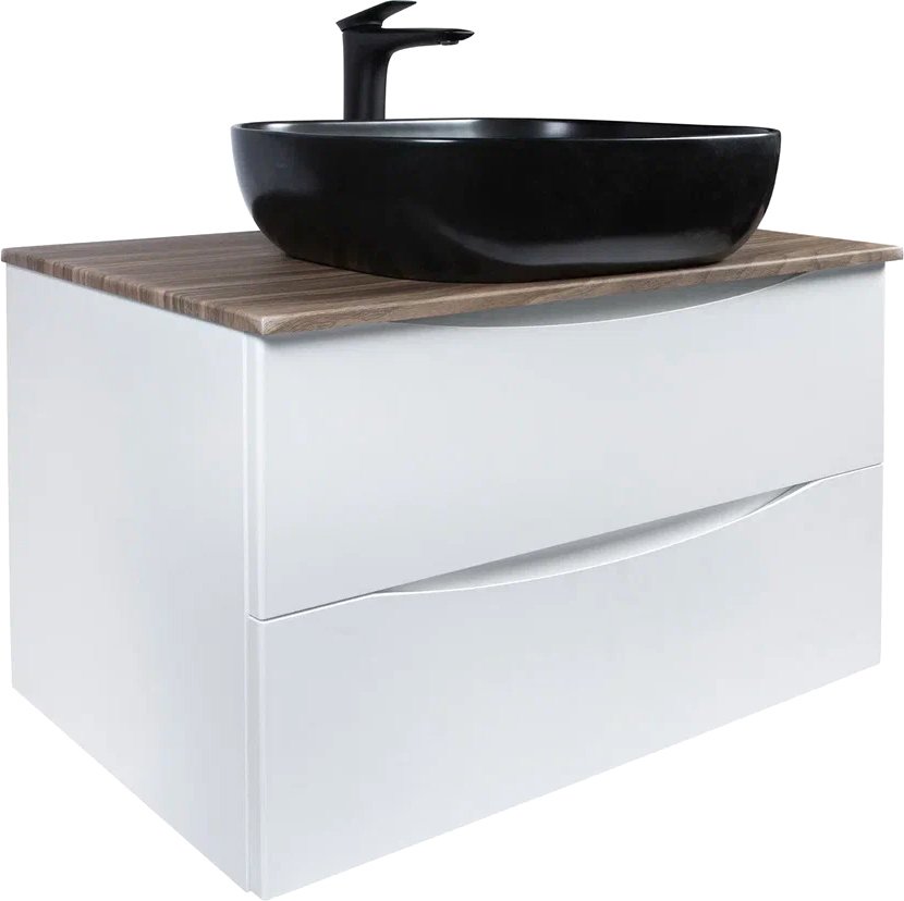 Тумба под раковину со столешницей BOND Куб 80 подвесная, матовая белая, под дерево