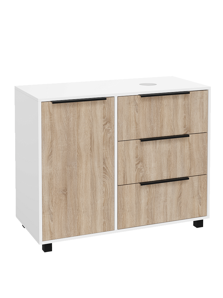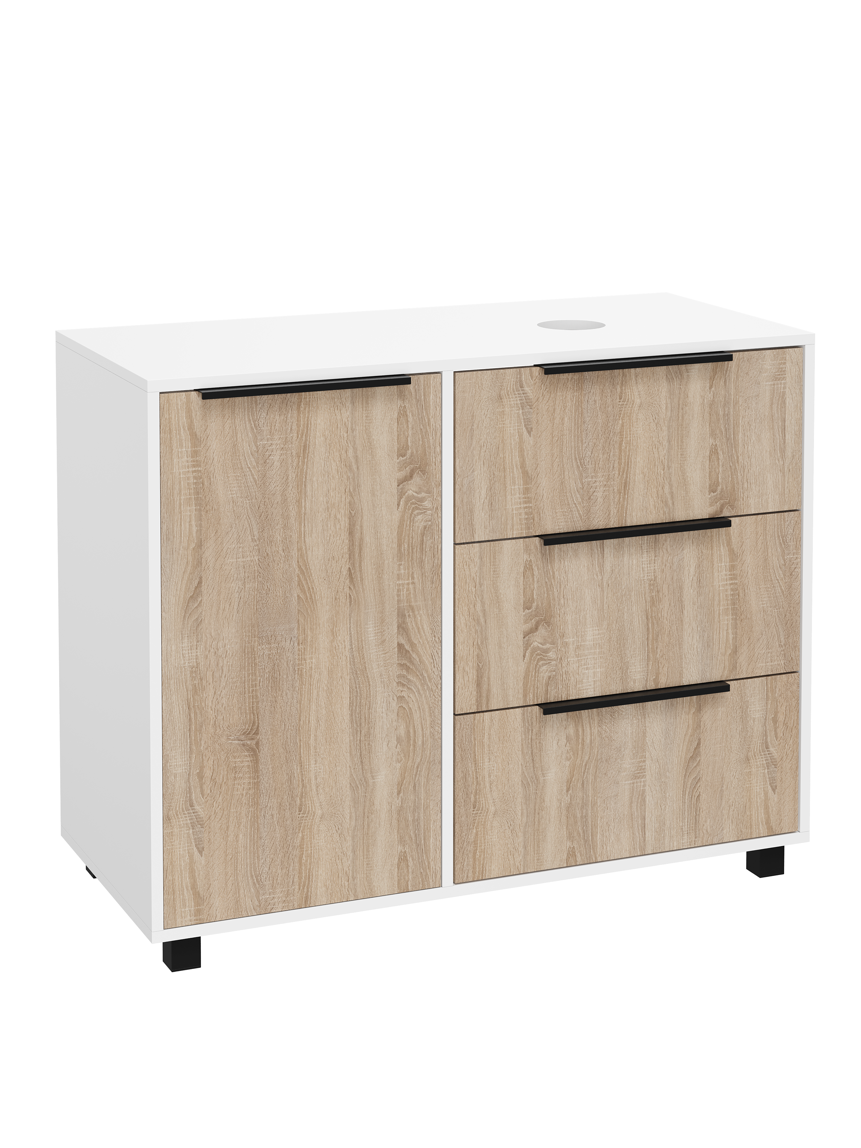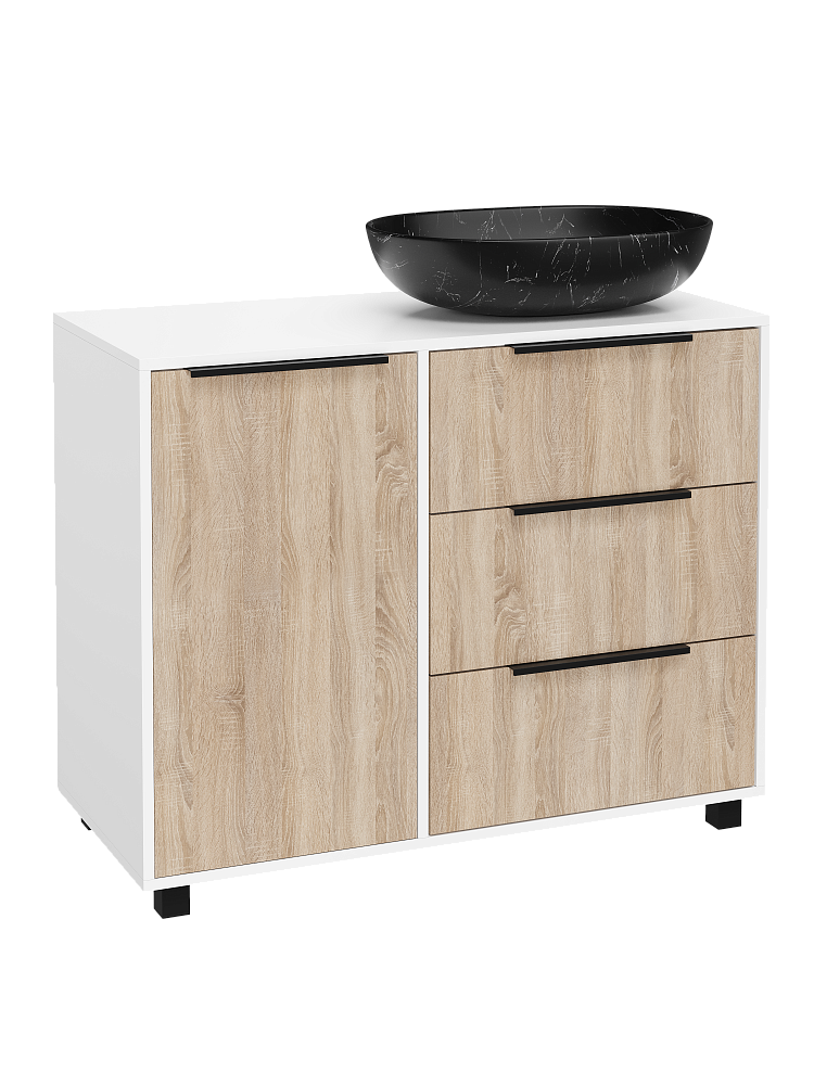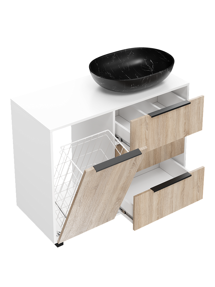 Тумба под раковину со столешницей DIWO Анапа 100 с корзиной, белая, дуб сонома