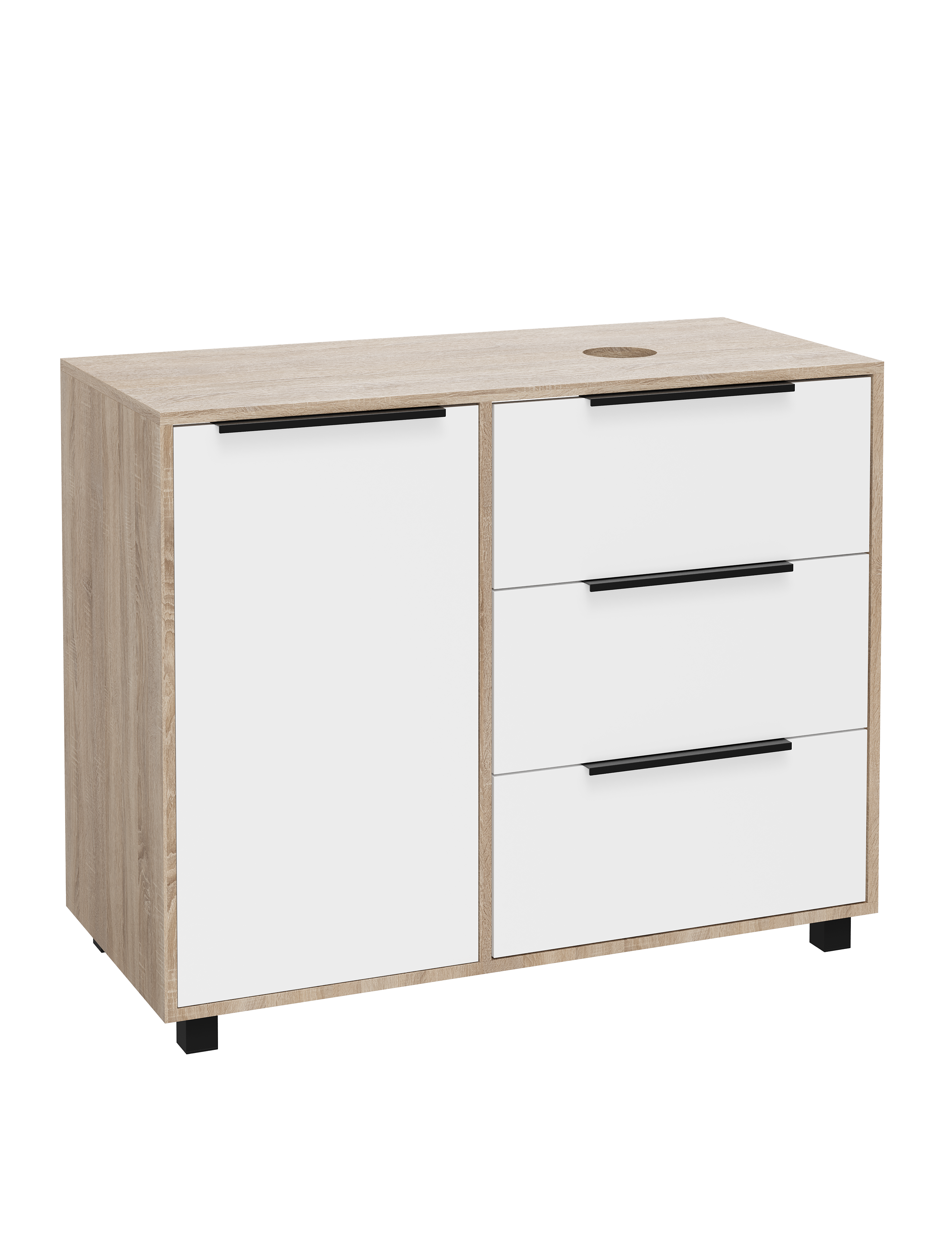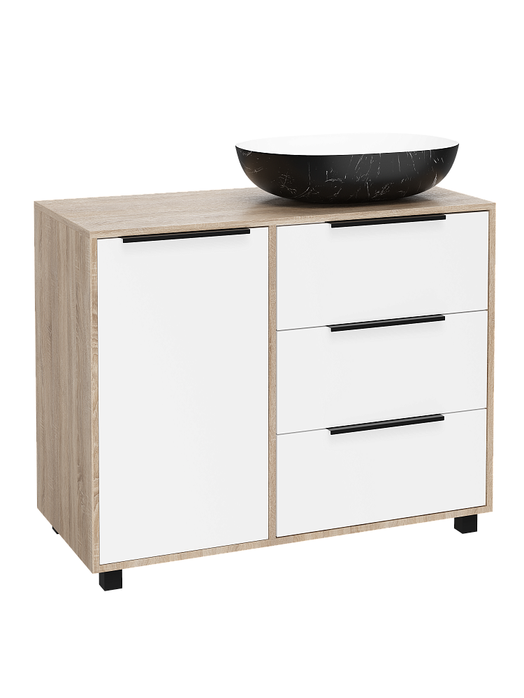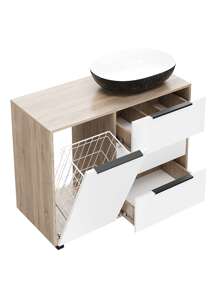 Тумба под раковину со столешницей DIWO Анапа 100 с корзиной, дуб сонома, белый