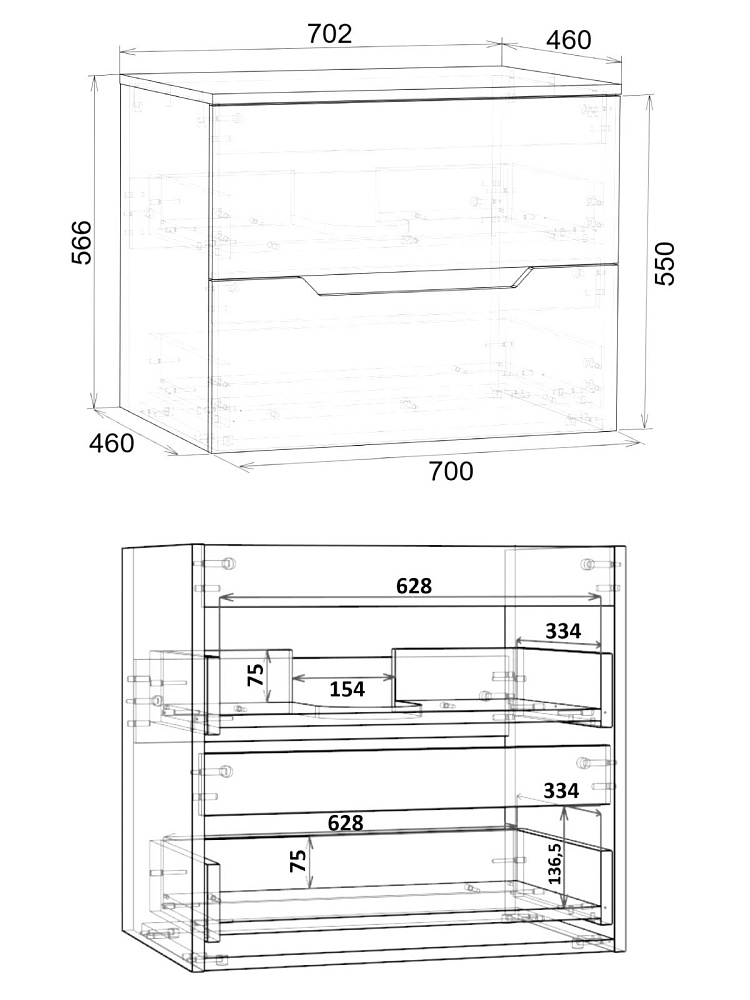 Тумба под раковину со столешницей Orange Line 70 подвесная, 2 ящика, матовый графит