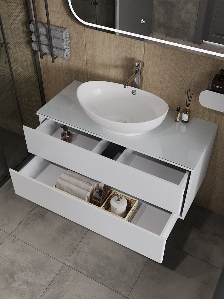 Тумба под раковину со столешницей Orange Otto 100 со стеклянной столешницей, белый глянец