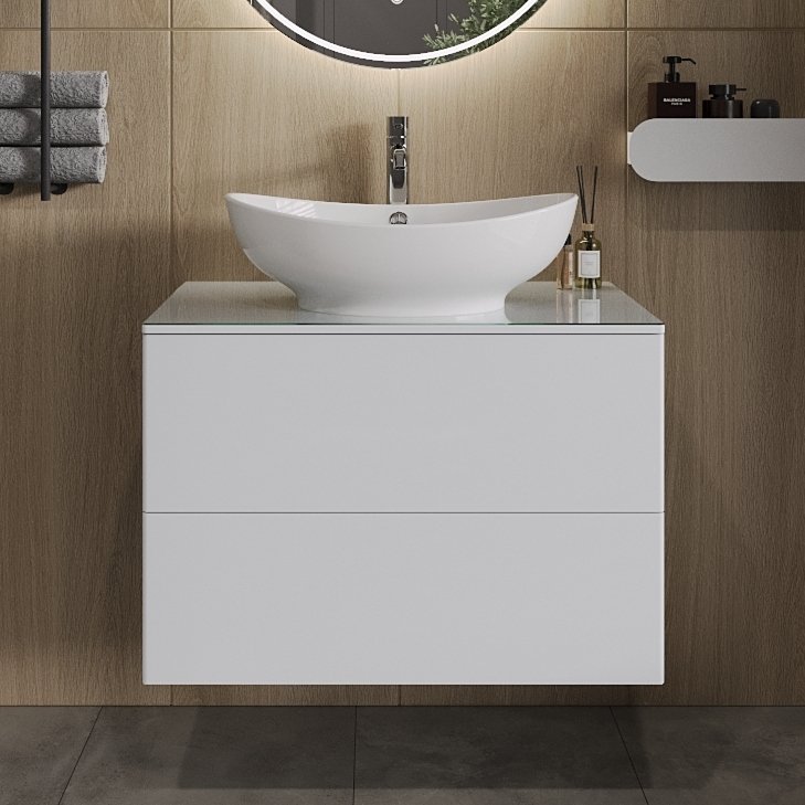Тумба под раковину со столешницей Orange Otto 75 со стеклянной столешницей, белый глянец