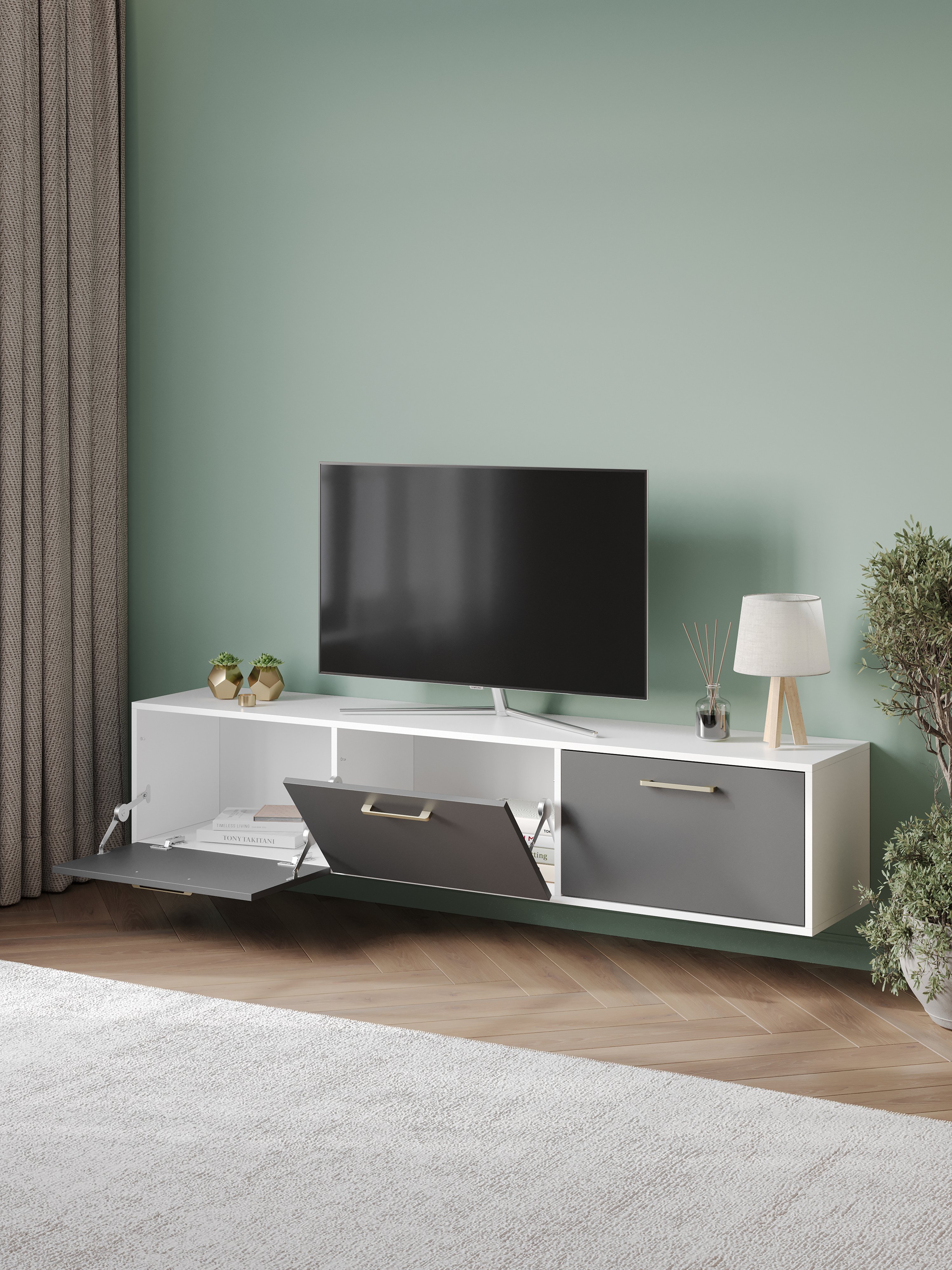 Тумба под телевизор DIWO Кострома 180х36х35 см белый, антрацит, ручка золото