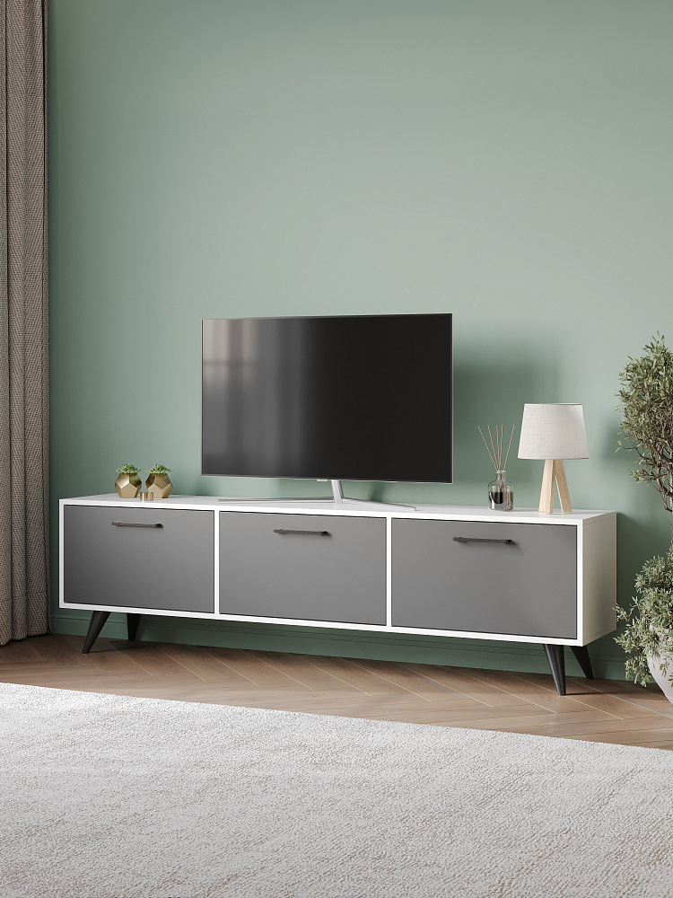 Тумба под телевизор DIWO Кострома 180х51х35 см белый, антрацит, ручка черная, ножка черная