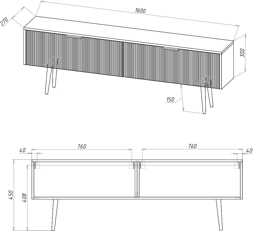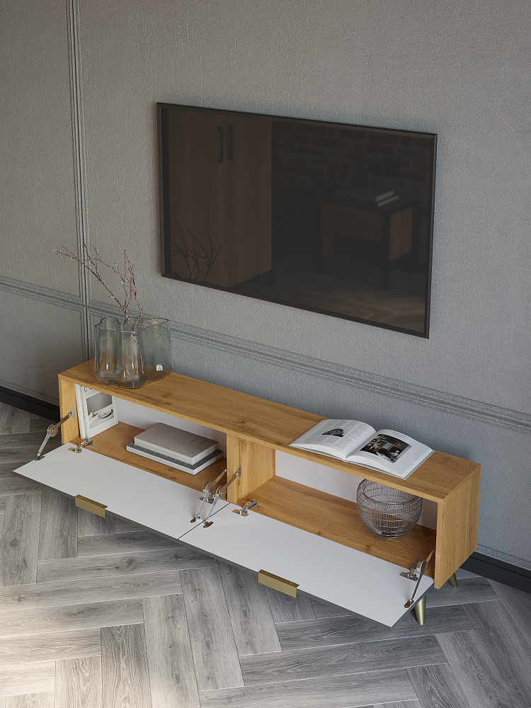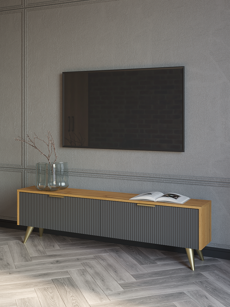 Тумба под телевизор DIWO Краснодар напольная 160x45x27 антрацит, дуб вотан, ручка золото