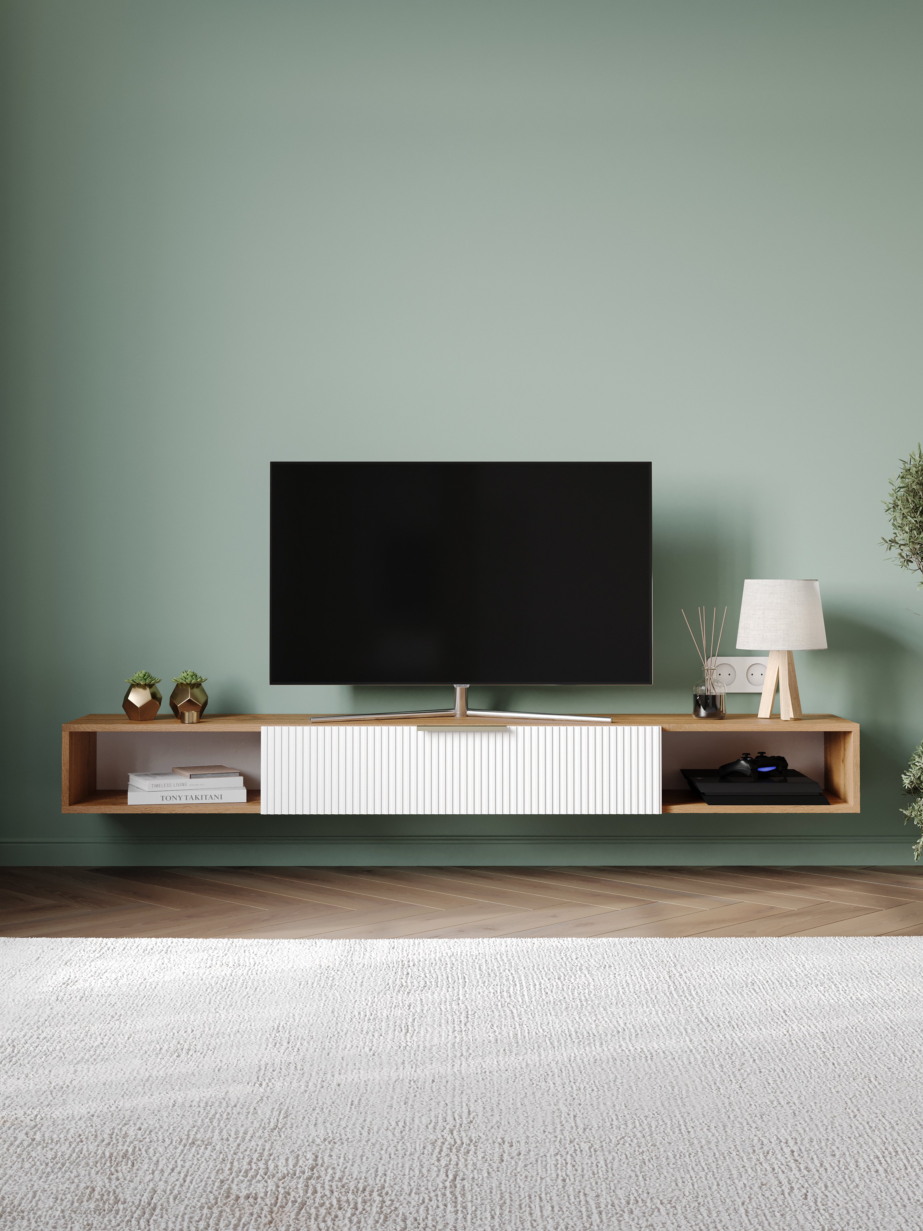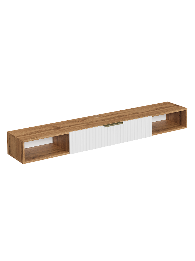 Тумба под телевизор DIWO Краснодар подвесная 180x20x30, см белая, дуб вотан, ручка золото