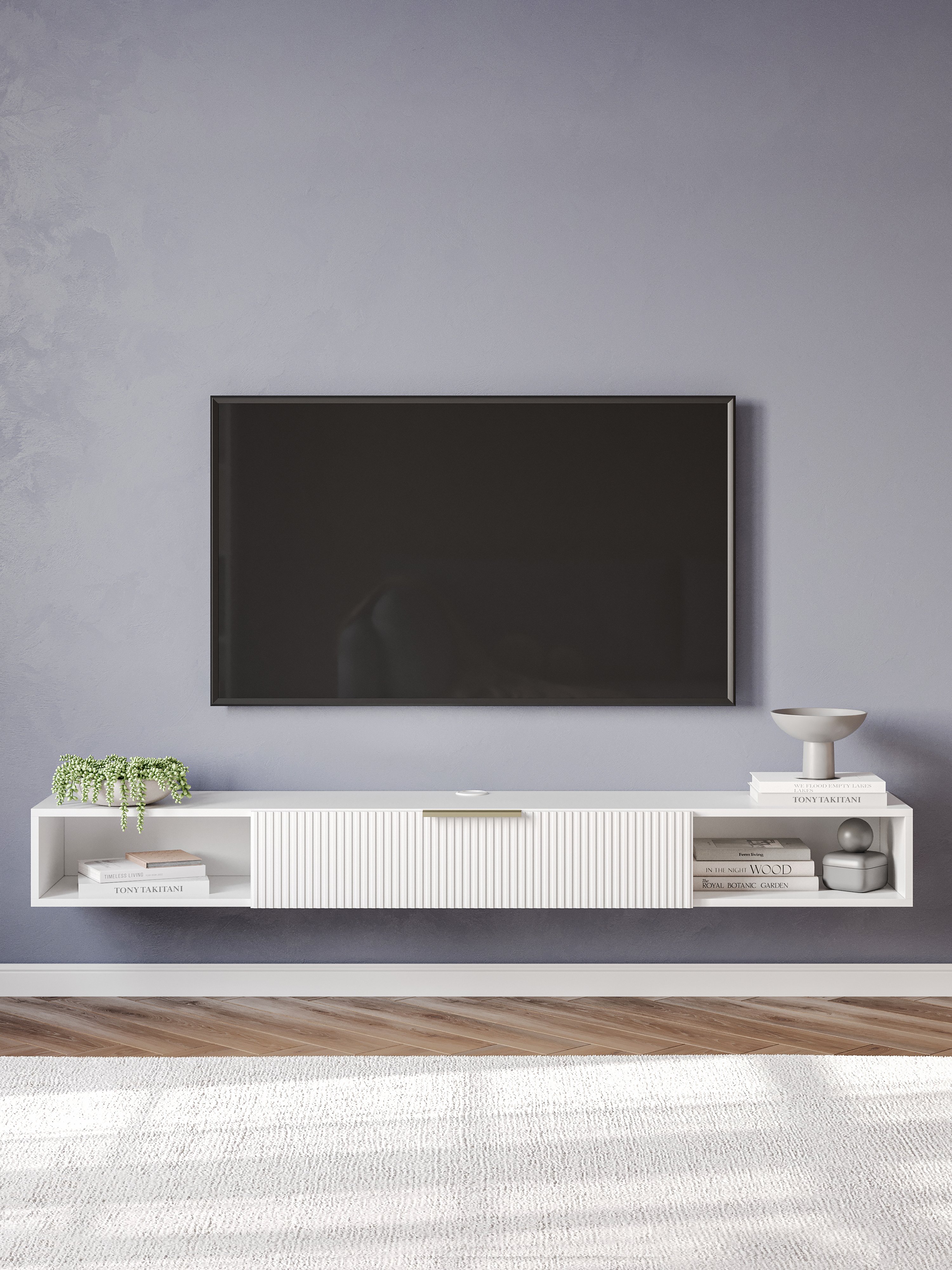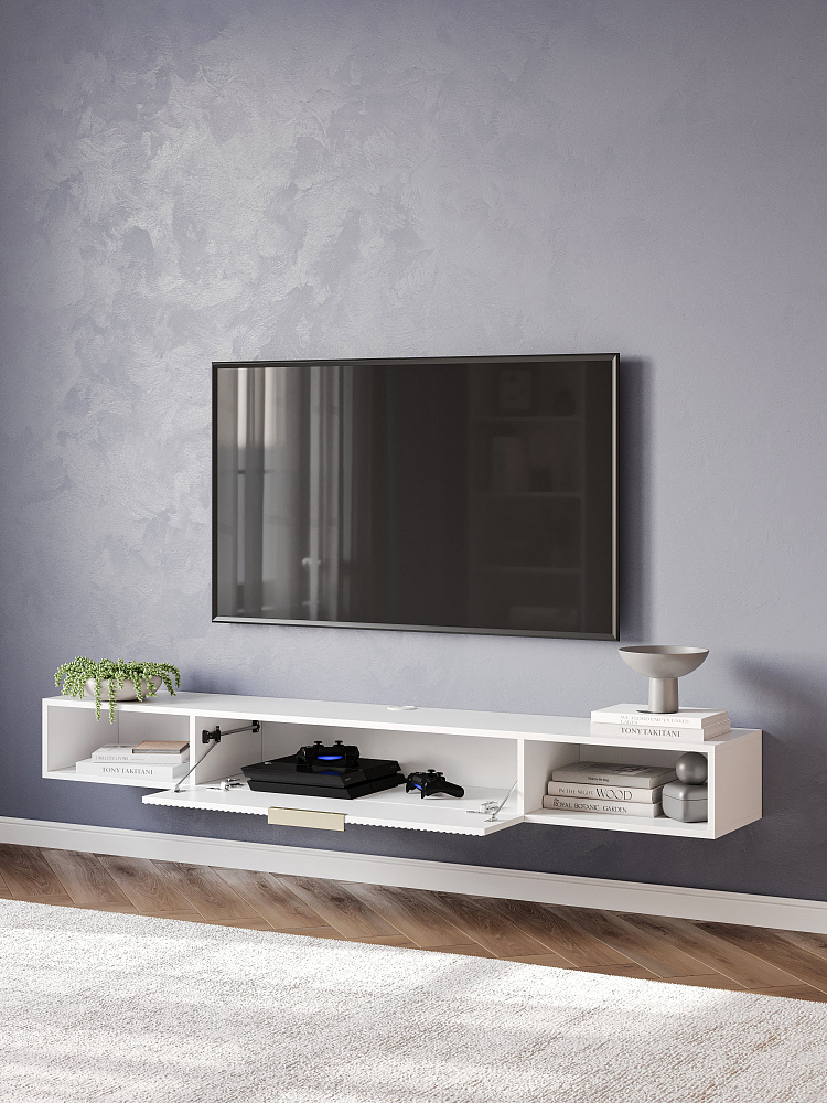 Тумба под телевизор DIWO Краснодар подвесная 180x20x30, см белая, ручка золото