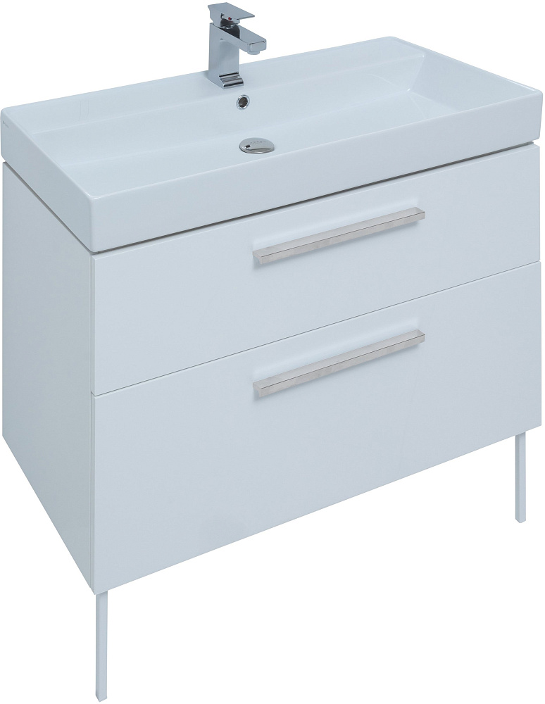 Тумба с раковиной Aquanet Nova 75 белый глянец, ручки матовый хром, ножки белые