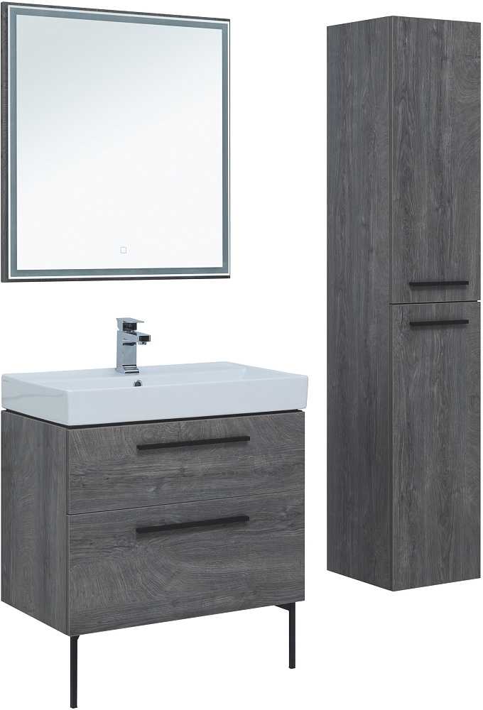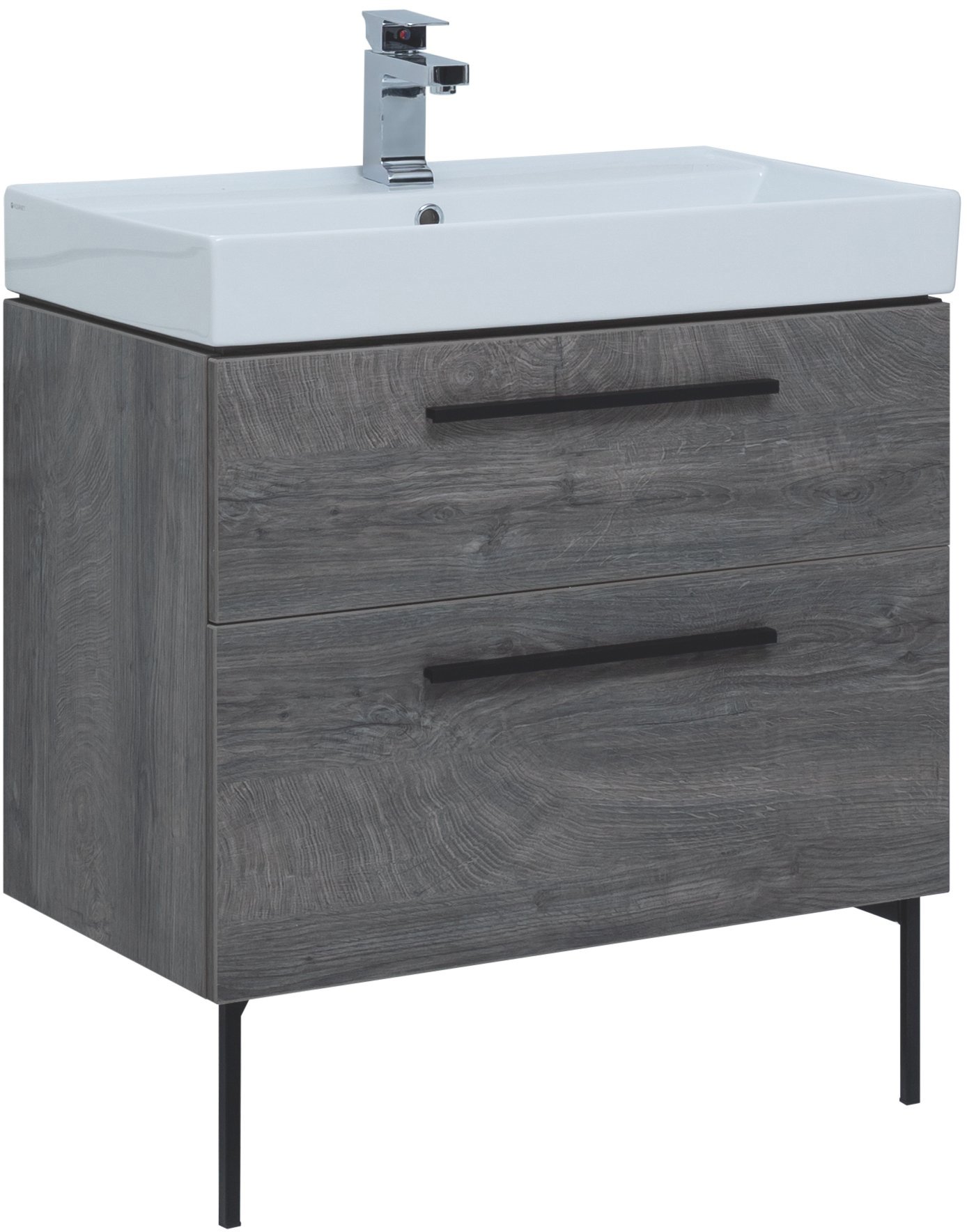 Тумба с раковиной Aquanet Nova 75 дуб рошелье, ручки черные, ножки черные